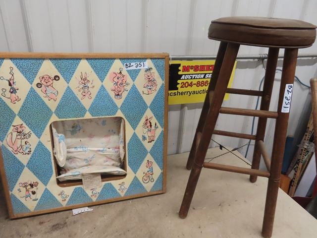 Vintage Ironing Board, Retro Baby Feeding Chair & Stool