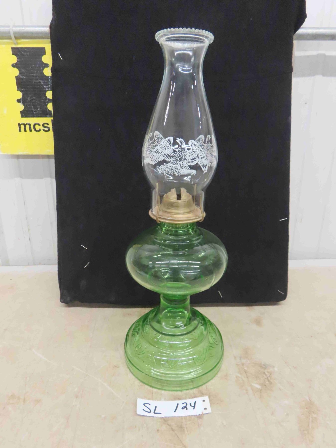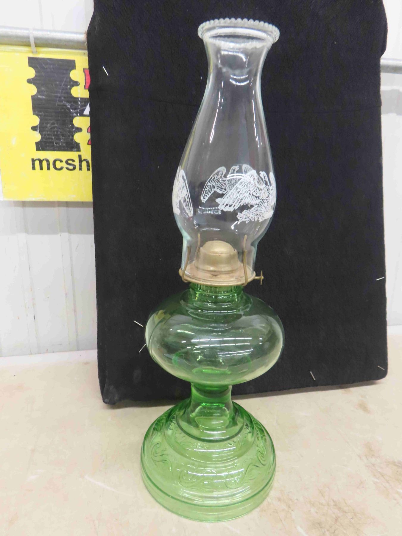 Vintage Kerosene Lantern 18'' Tall -Base Has Light Green Tinge