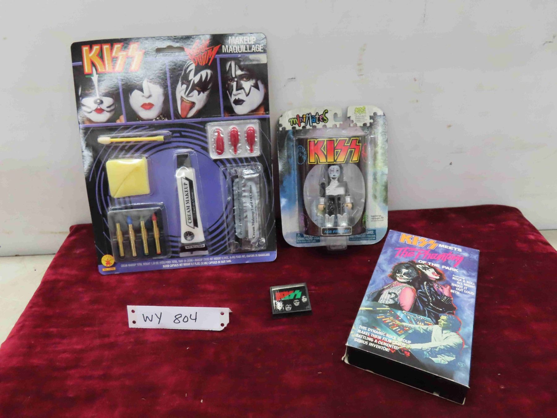 Vintage Kiss Lot : 1988 First Edition VHS Kiss Meets the Phantom, 1985 Glass Button , Makeup Kit & Ace Frehley Figure