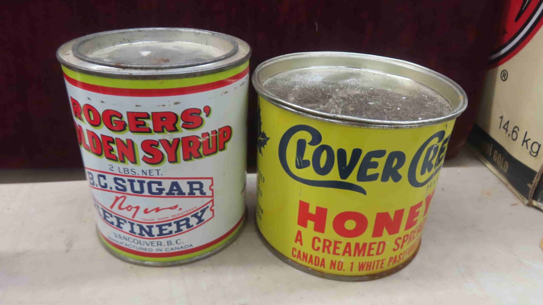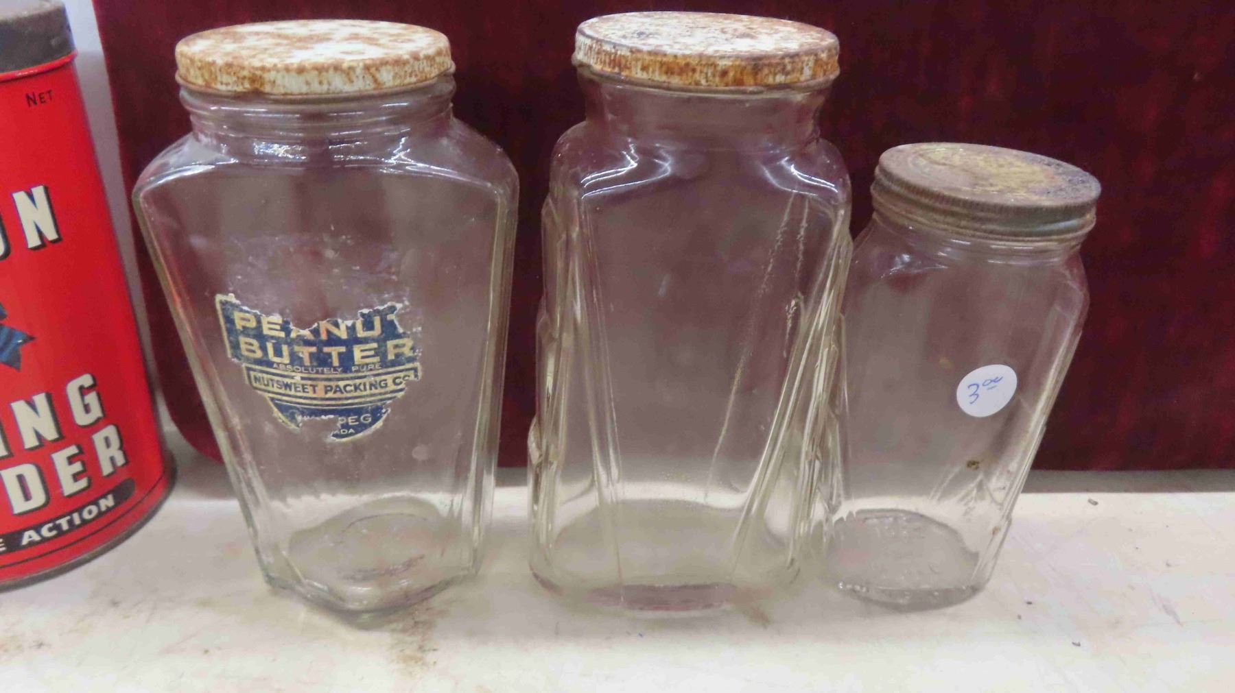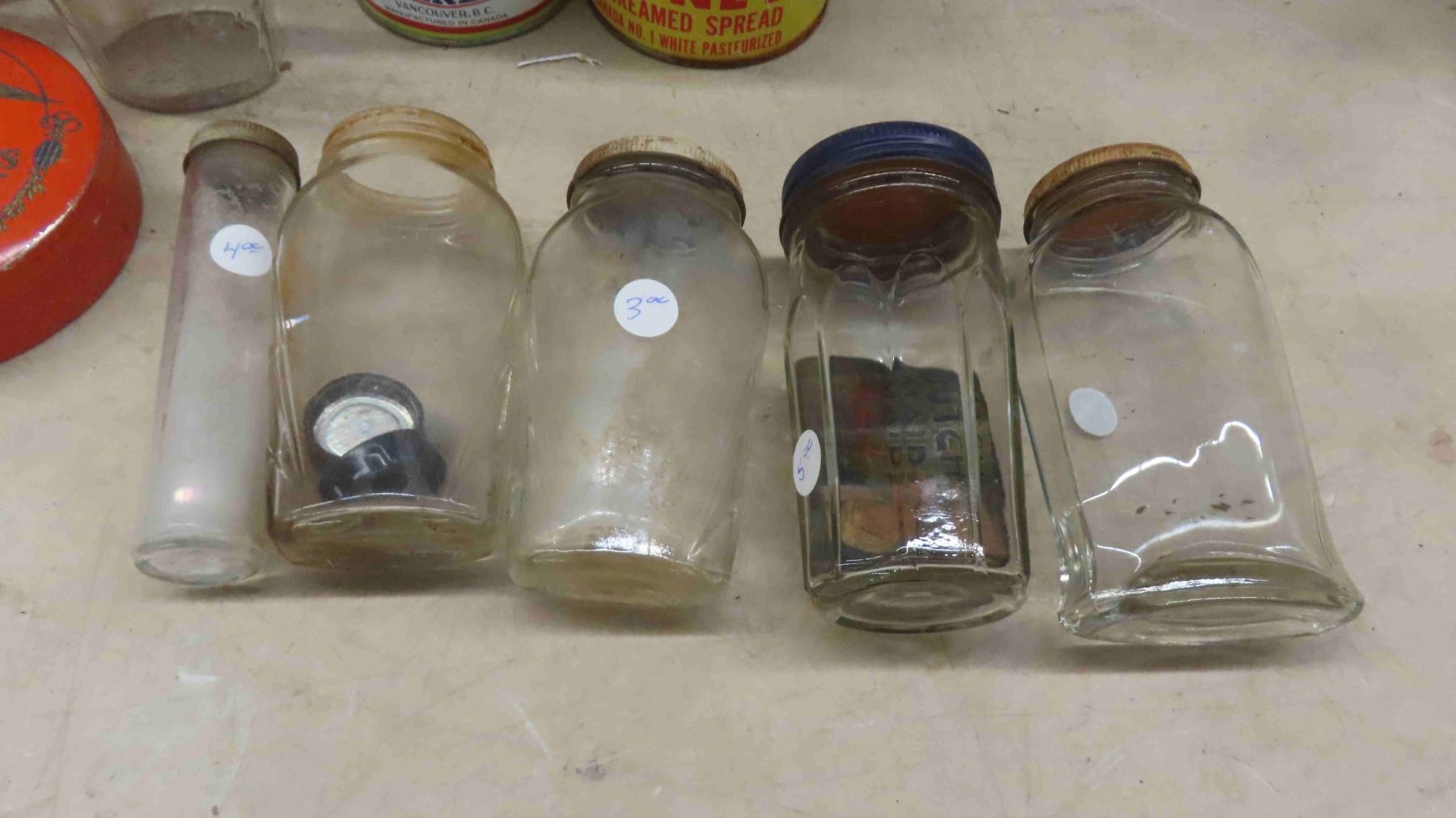 Vintage Kitchen + Medicinal Bottles and Tins : Baking Powder , Blue Ribbon, Coffee , Honey , Vasoliine & Others