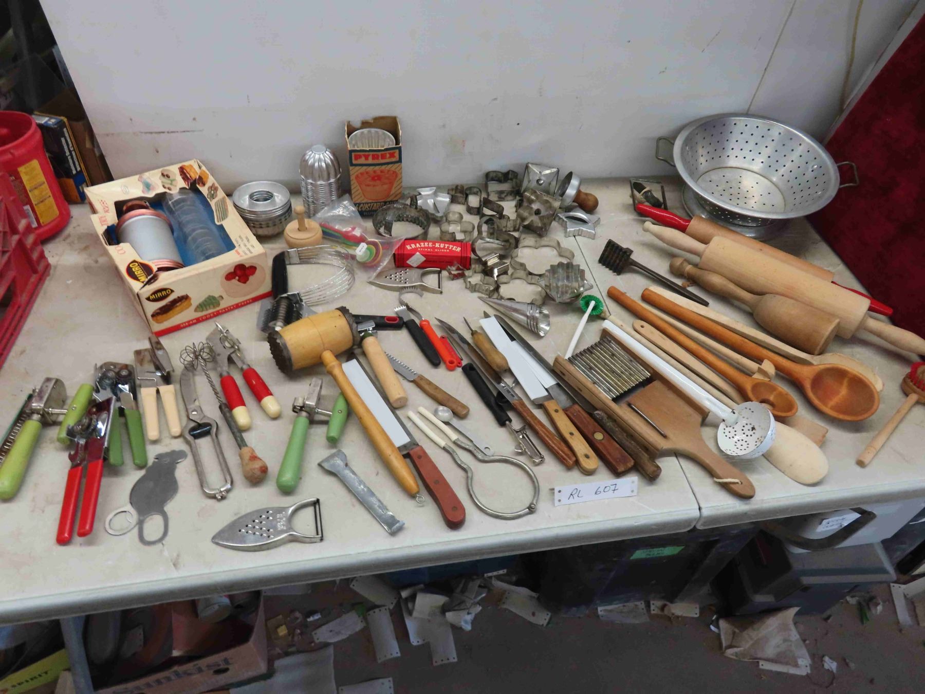 Vintage Kitchen Tools , Knives , Tenderizer, Rolling Pins, Can Openers, Cookie Cutter , Tart Tins & More