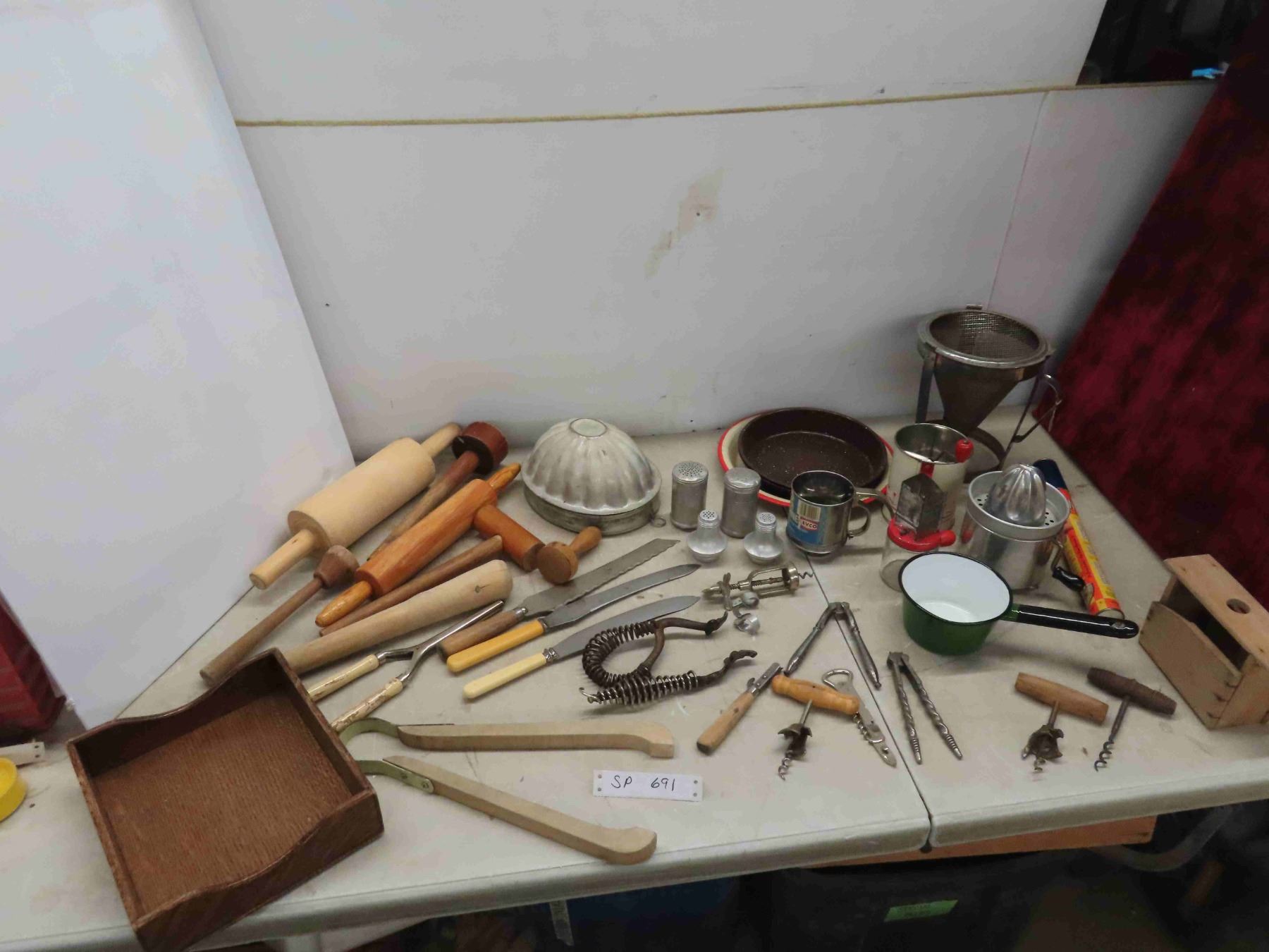 Vintage Kitchen Tools : Sifters, Juicer, Knives, Rolling Pins, Pie Plate & More