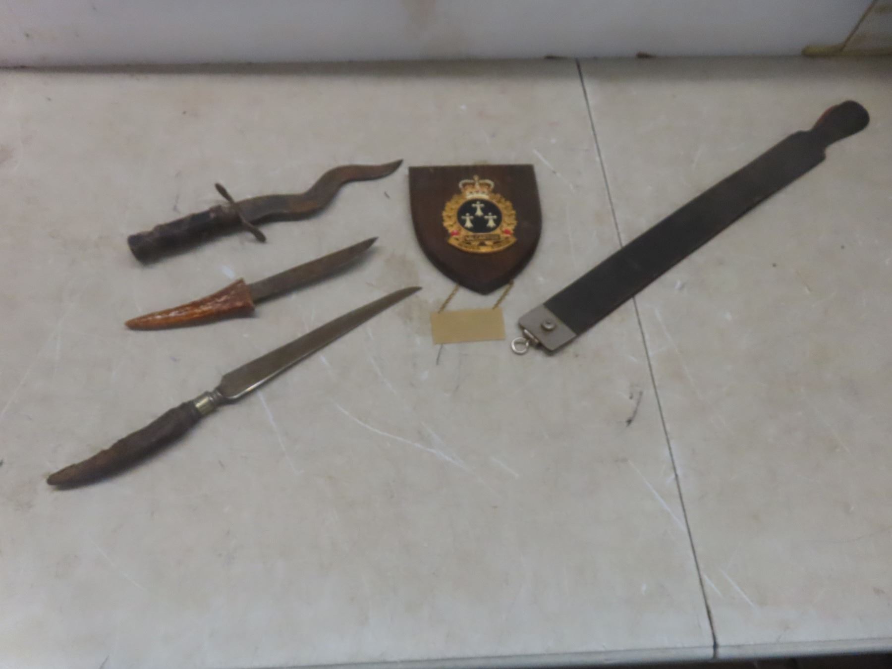 Vintage Knives Japanese 12'' Curvy Dagger 15x10'' Knives, Razor Strap