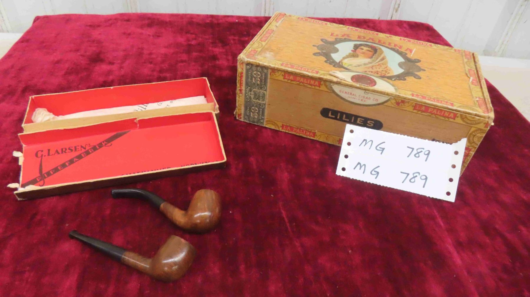 Vintage La Palina Cigar Box , 2 Lillehammer Pipes