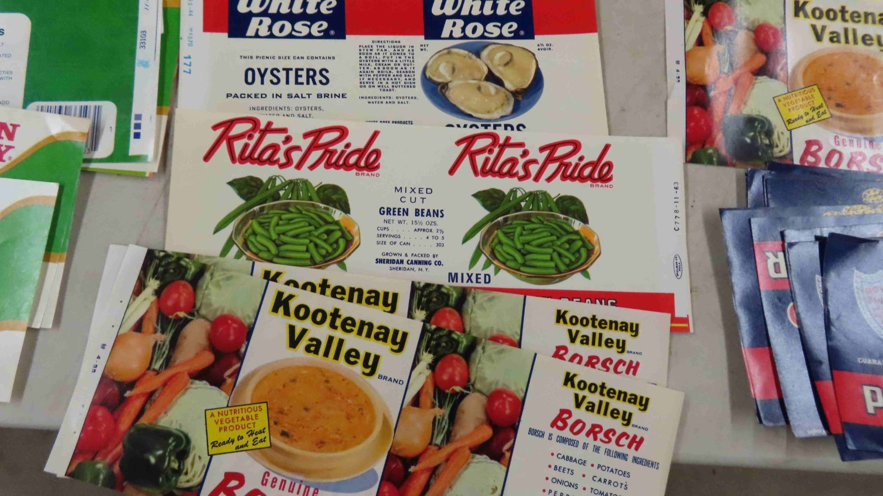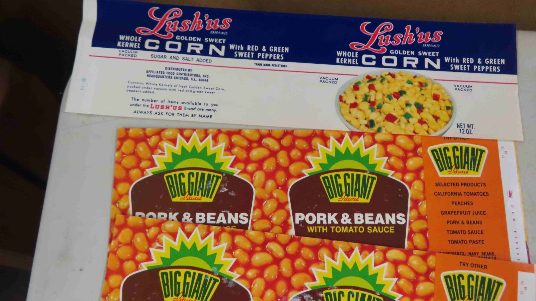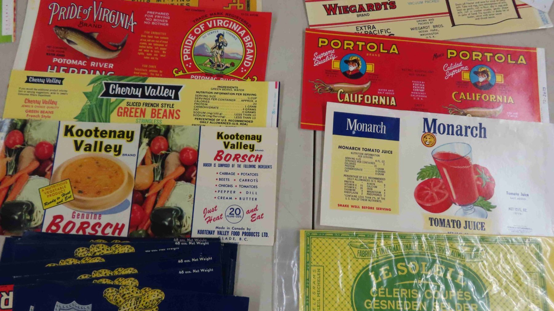 Vintage Labels - Cannon Valley, Big Giant, Lushus Corn, Ritas Pride, Jonesport Fish Flakes, Plus