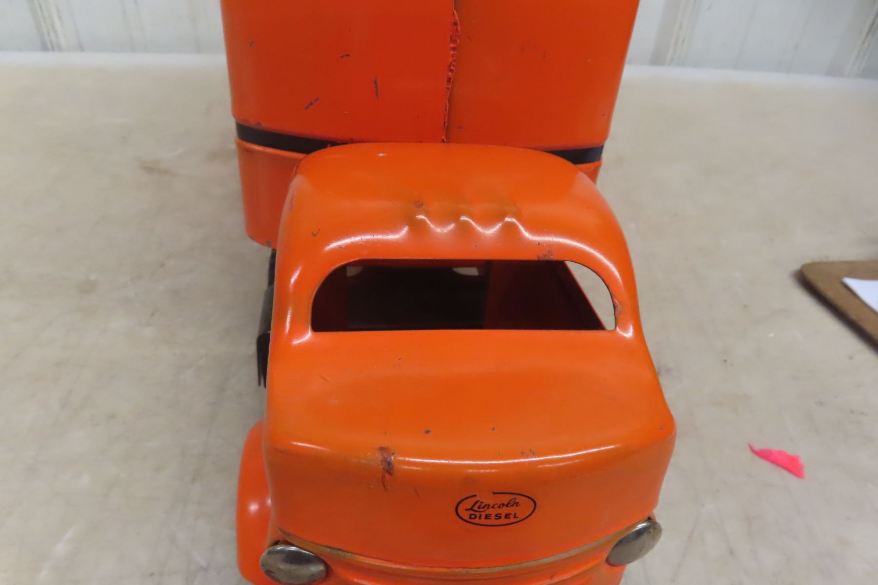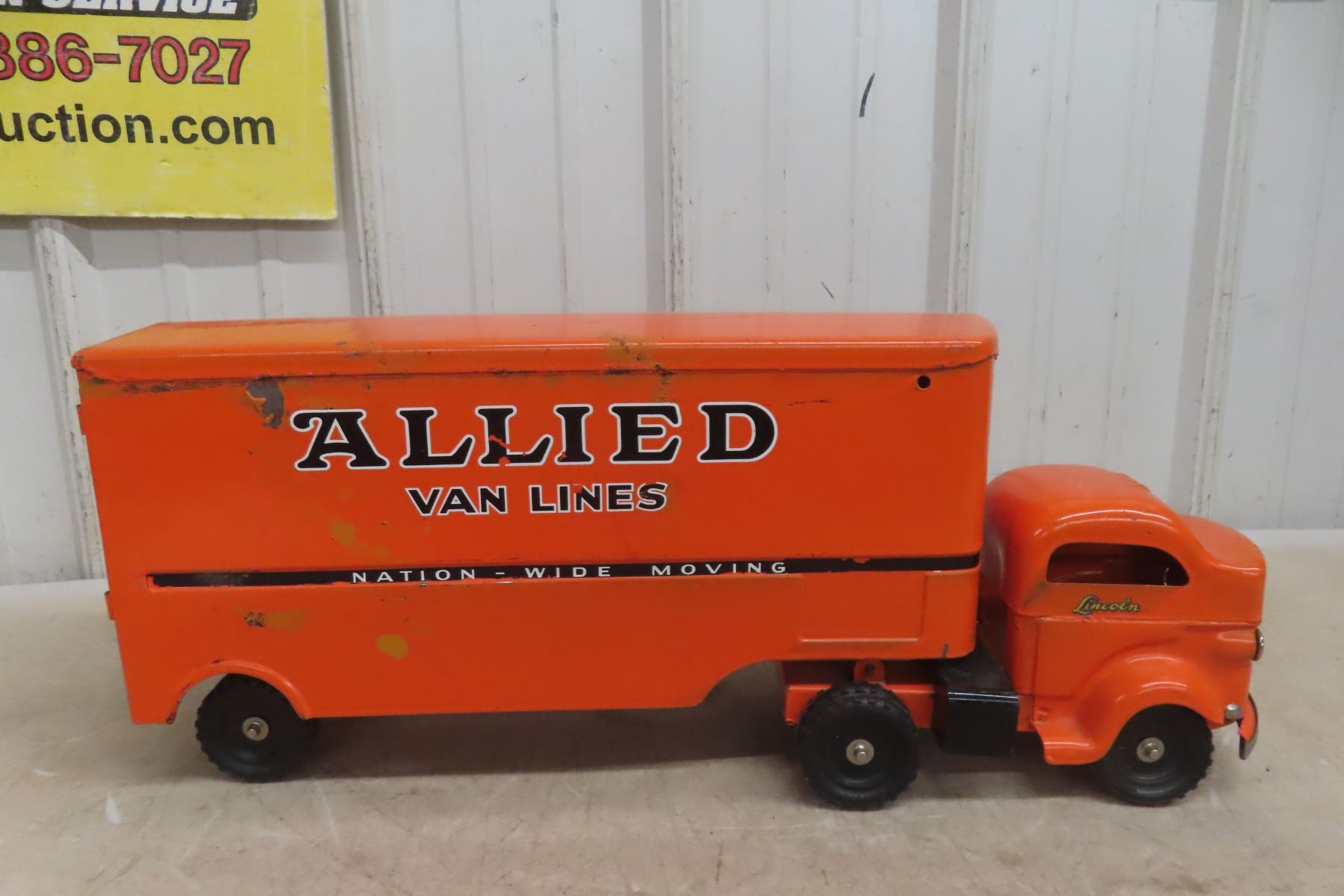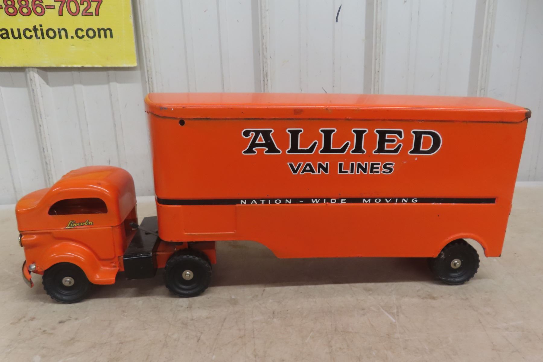 Vintage Lincoln Diesel Allied Van Lines Pressed Metal Truck and Trailer 22'' Long
