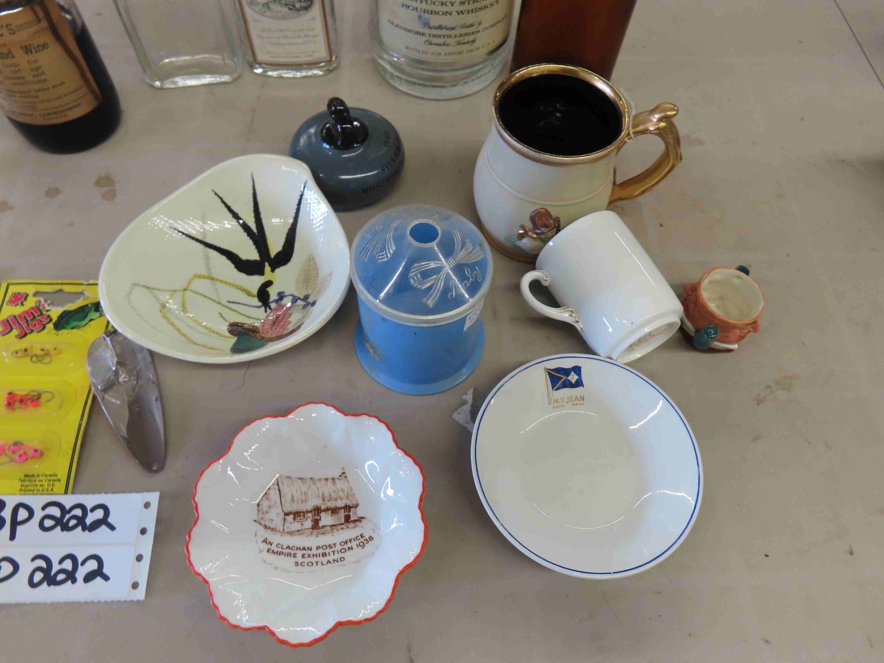 Vintage Liquor Bottles, Small Plates, Jugs, Cups