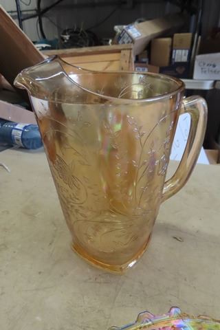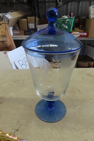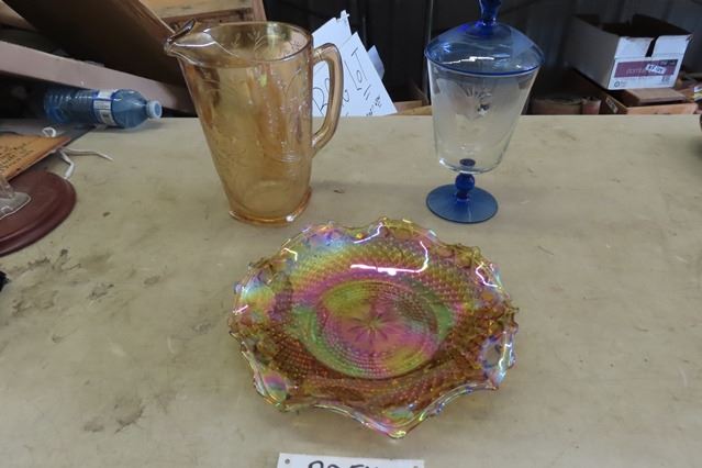 Vintage Louisa Floragold Pitcher, Jeanette Glass Ware Bowl, Covered Dish - Blue