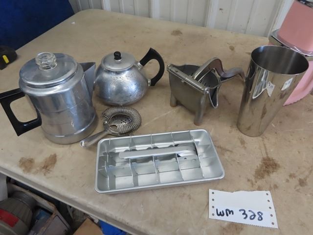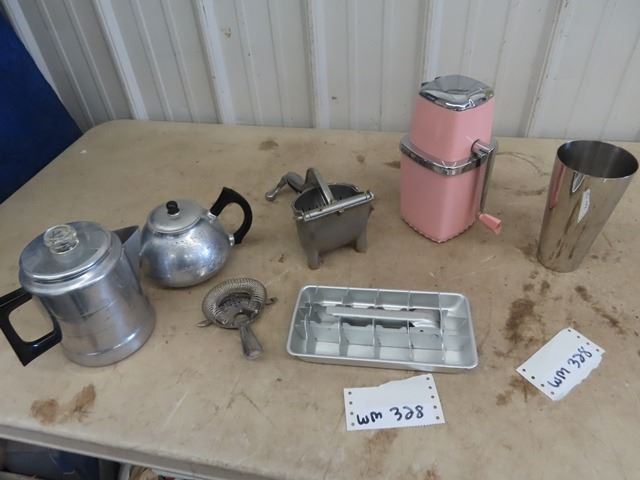 Vintage Maid of Honor Ice Crusher, Wearever Juicer, Alum Ice Maker Tray , Teapot Plus More!