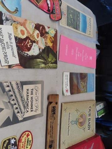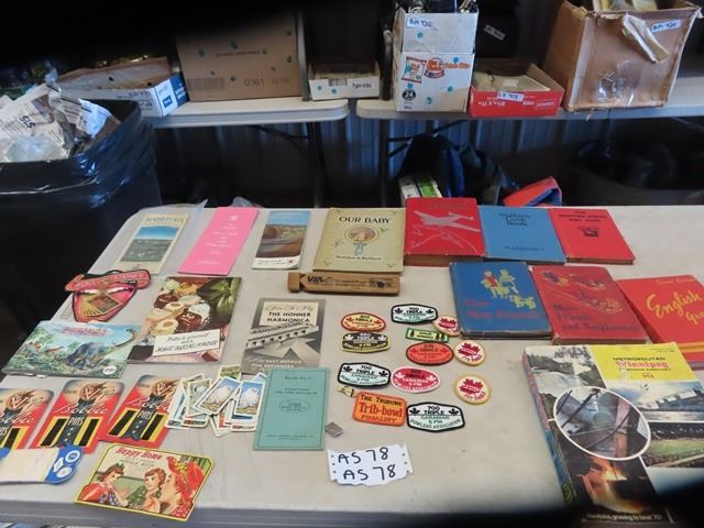Vintage Maps, Cook Books, School Books, 1968 Phone Book, Bobby Pins, Needles, Bowling Patches, Via Rail
