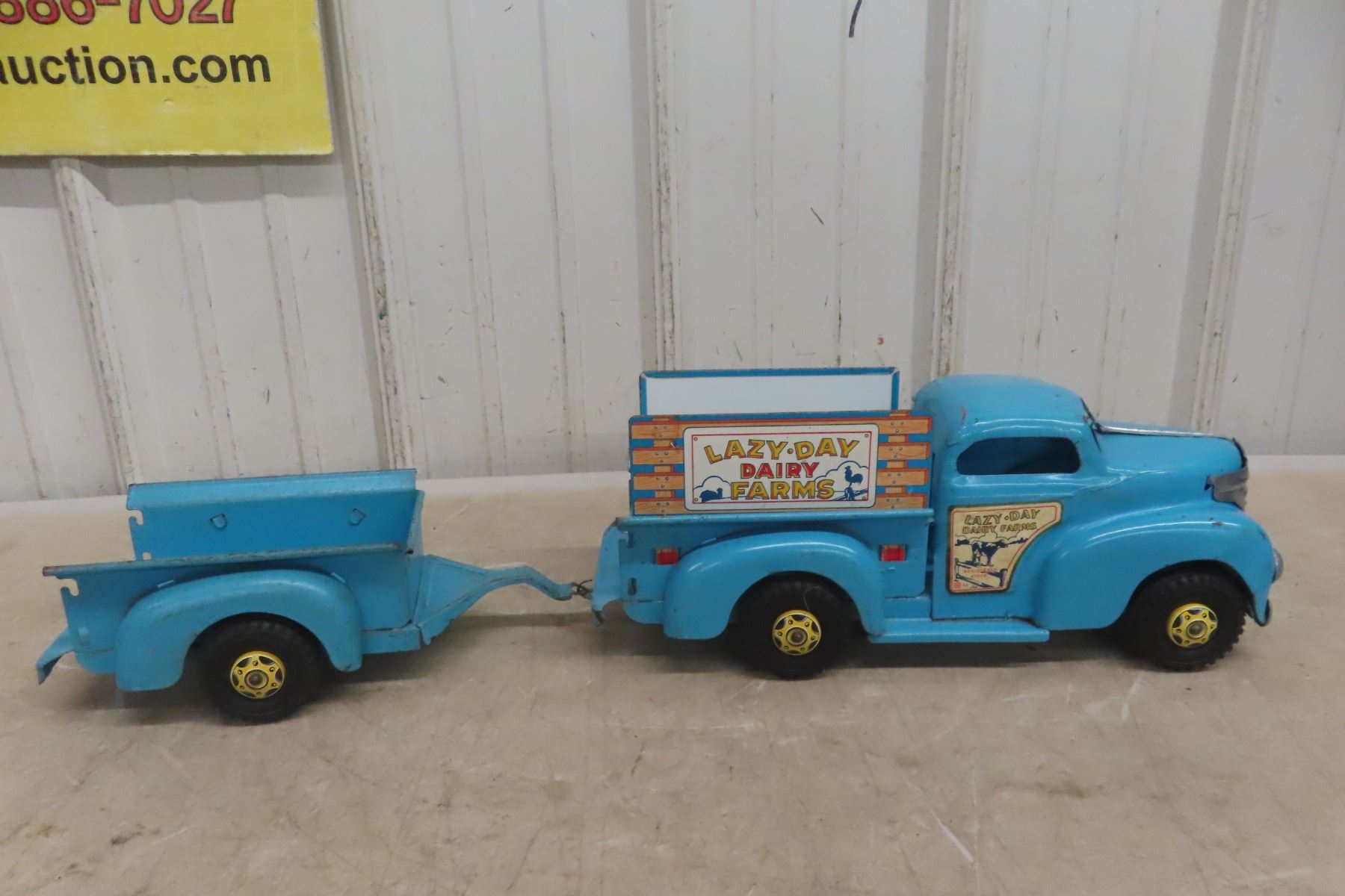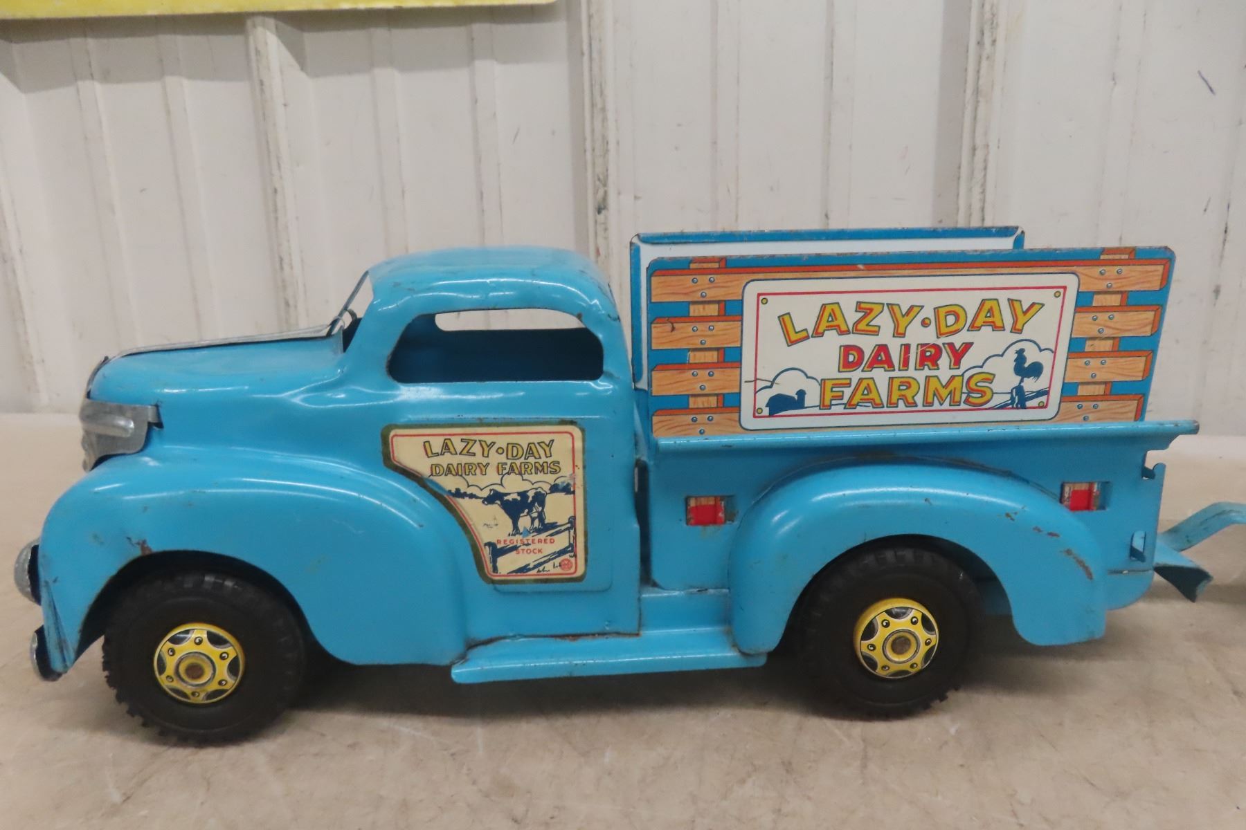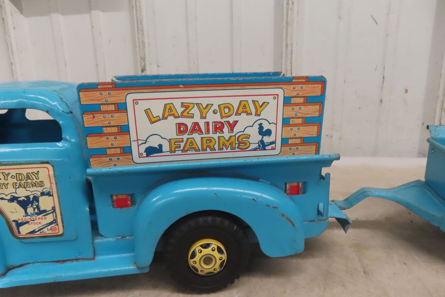 Vintage Marx Pressed Metal Lazy Day Dairy Farms with Trailer 25'' Long