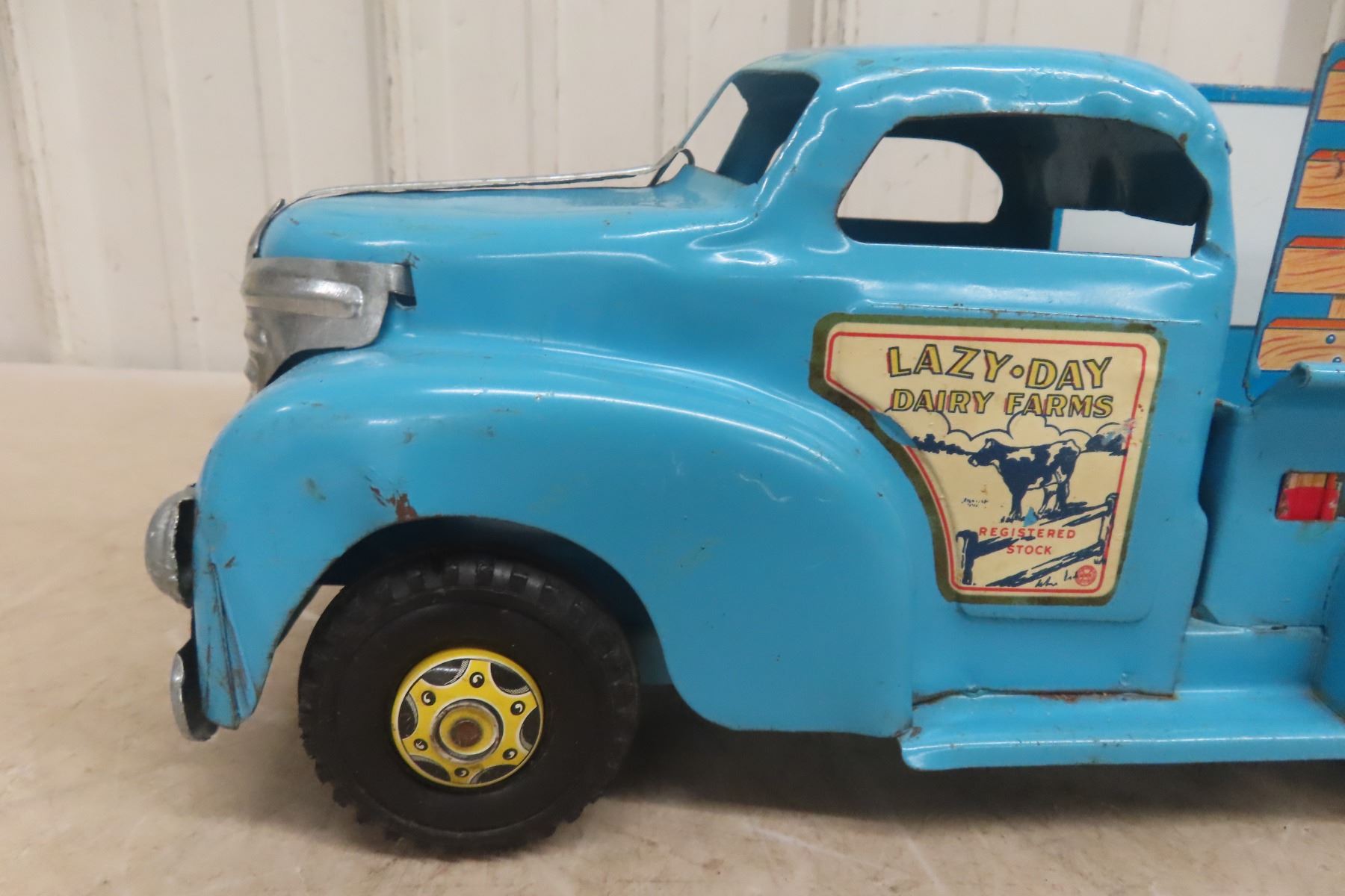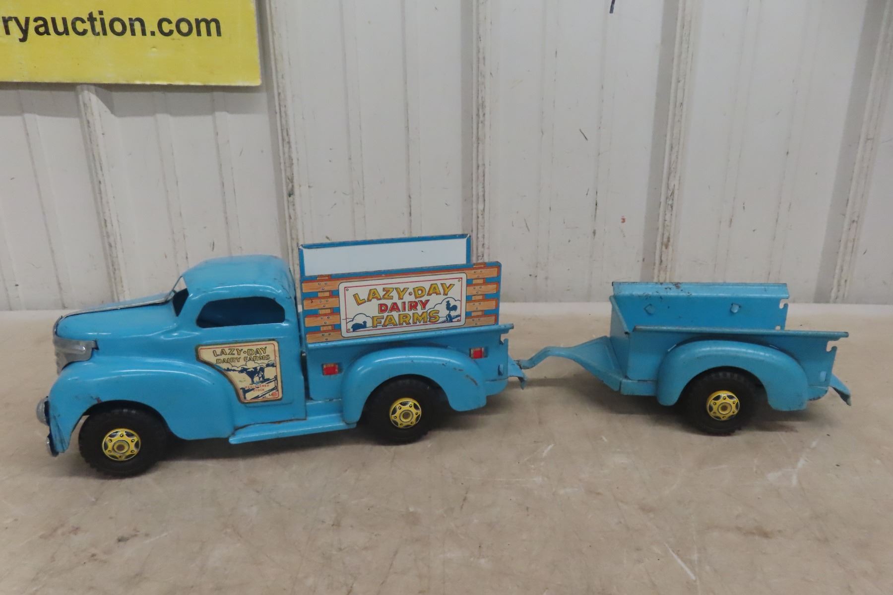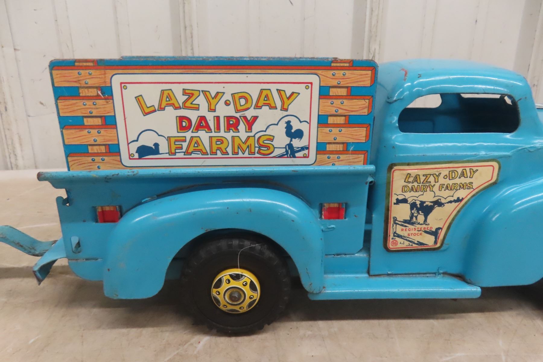 Vintage Marx Pressed Metal Lazy Day Dairy Farms with Trailer 25'' Long