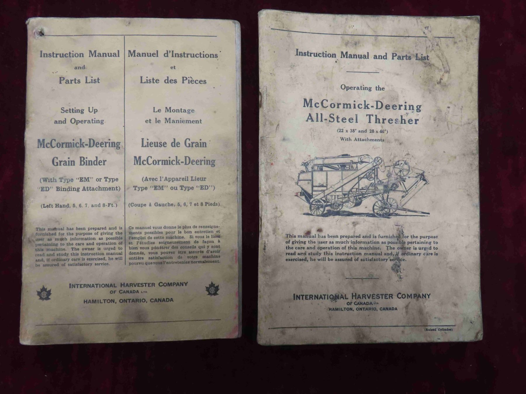 Vintage McCormick Deering Grain Binder Instruction Manual and Parts List , McCormick Deering All Steel Thresher, McCormick Deering 15-30 HP Gear Drive Tractor, McCormick Deering 15-30 HP Gear Drive TG112toTG99925 & More