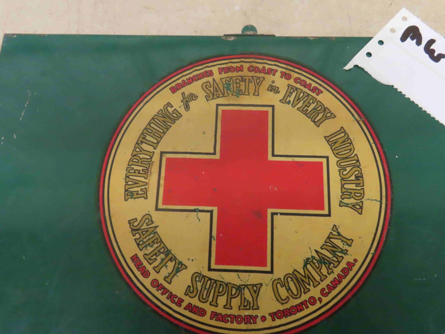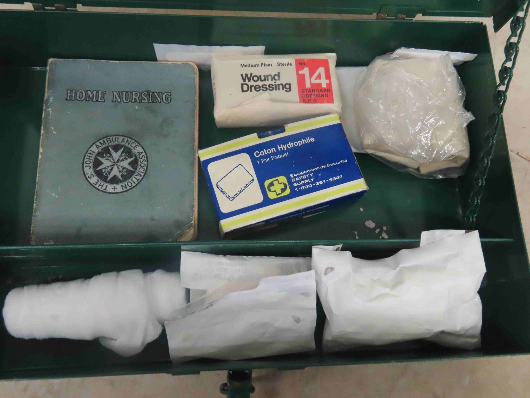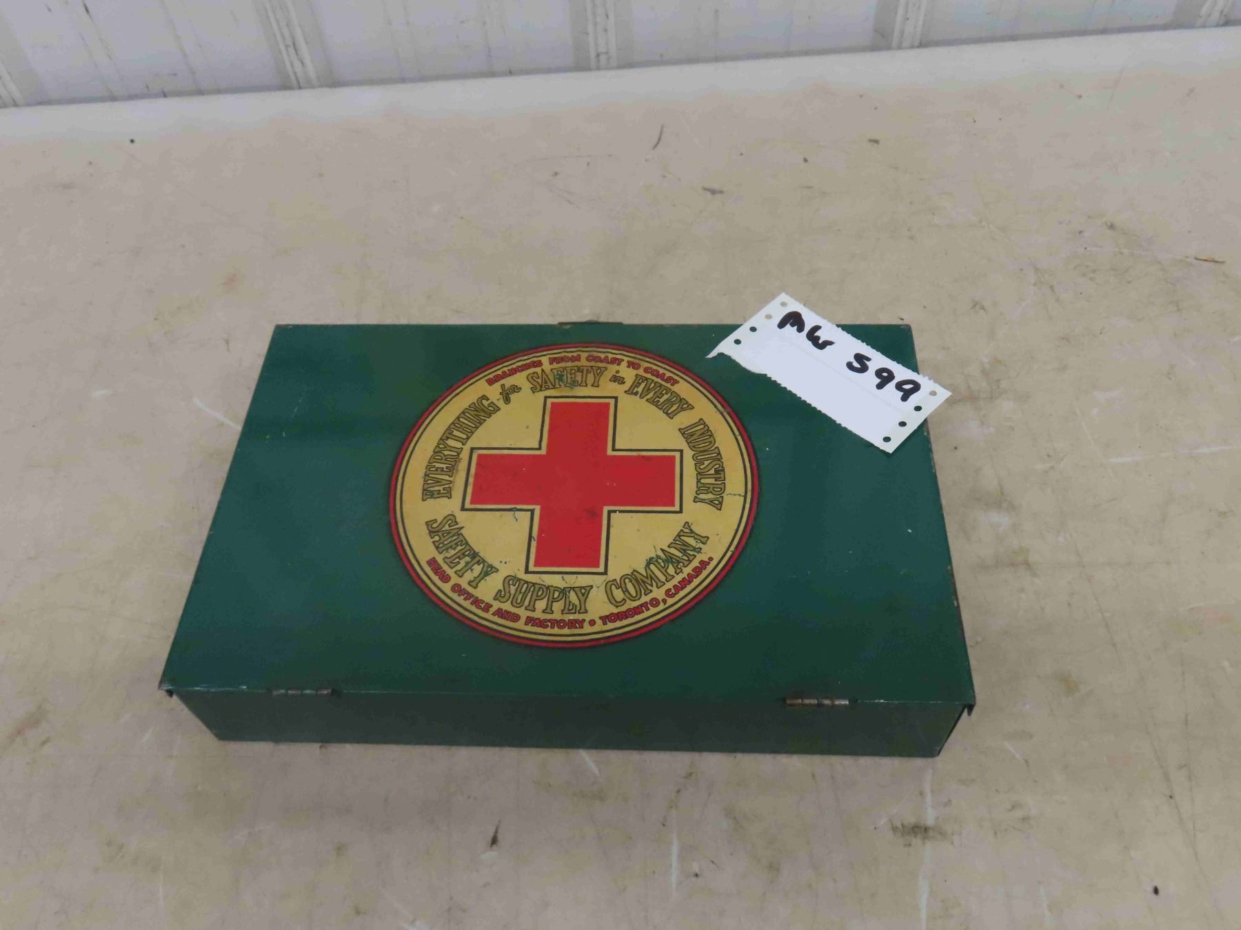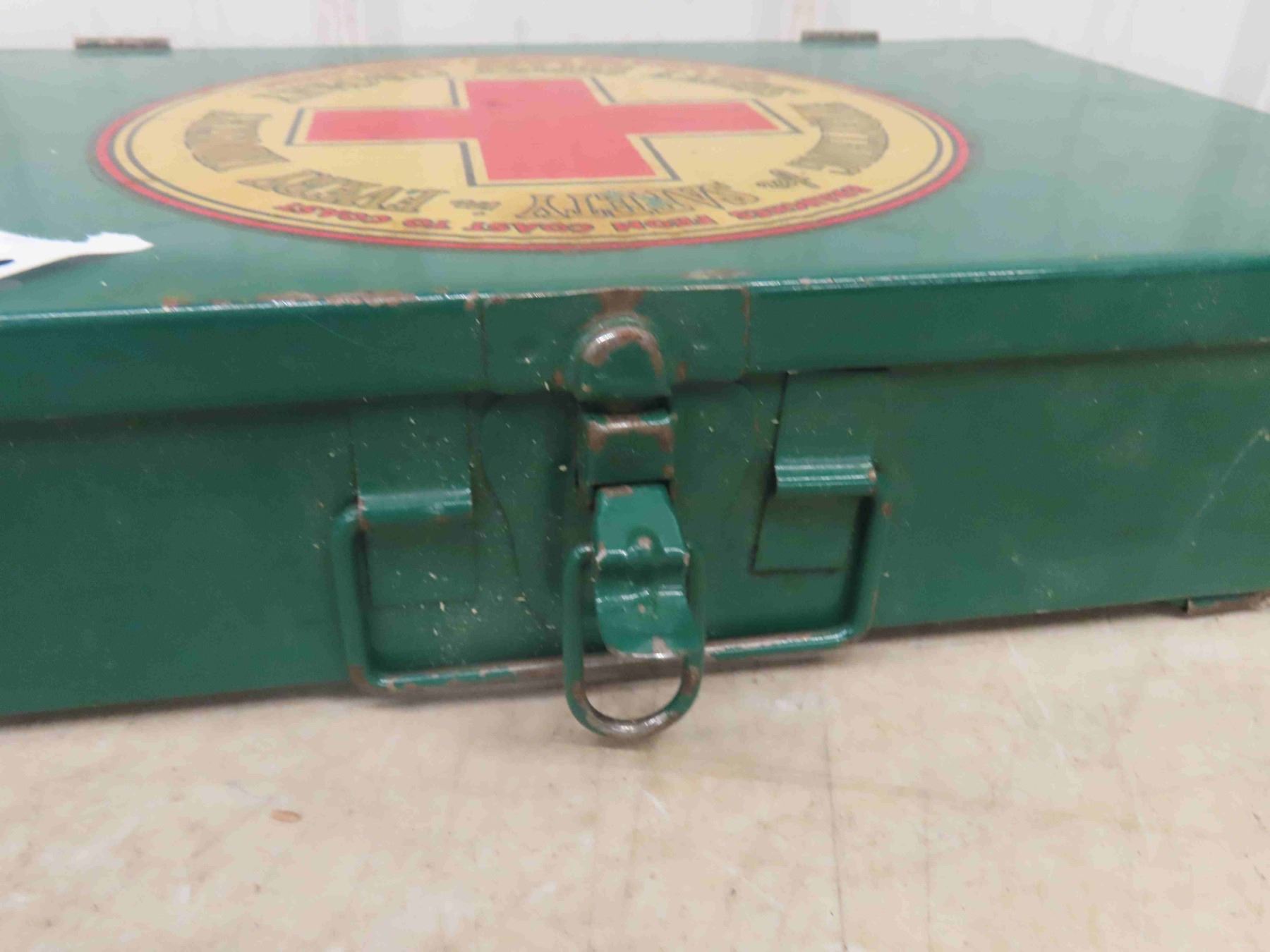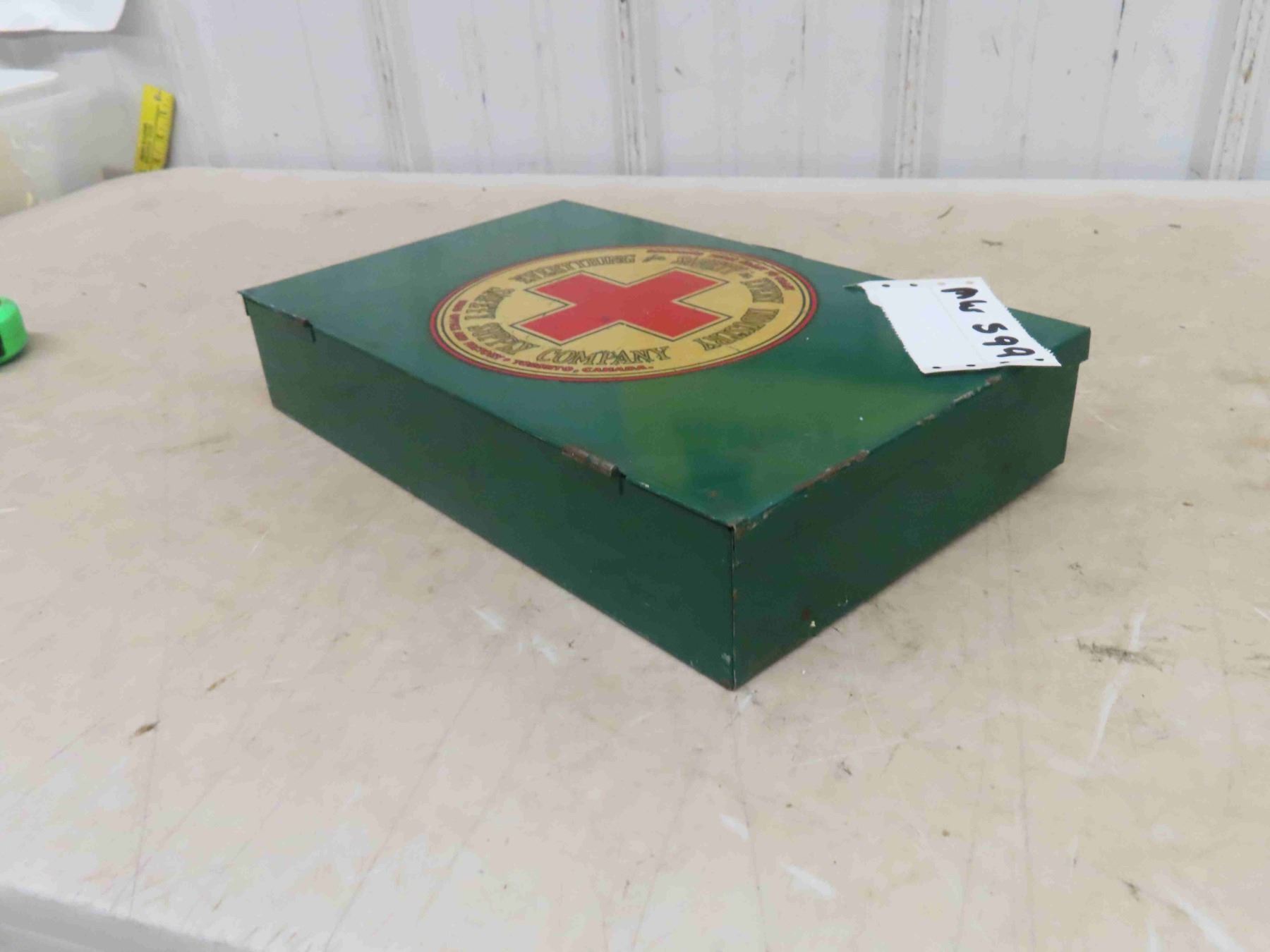 Vintage Metal 1st Aid Box with Supplies 3" x 8.5" x 13.5"