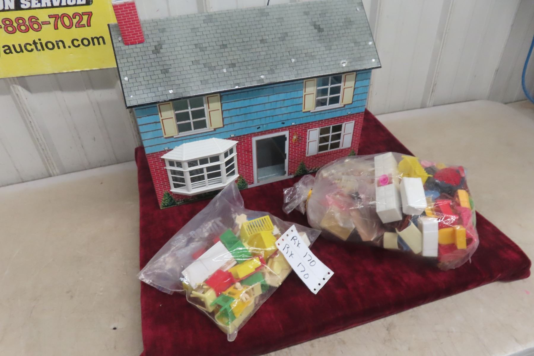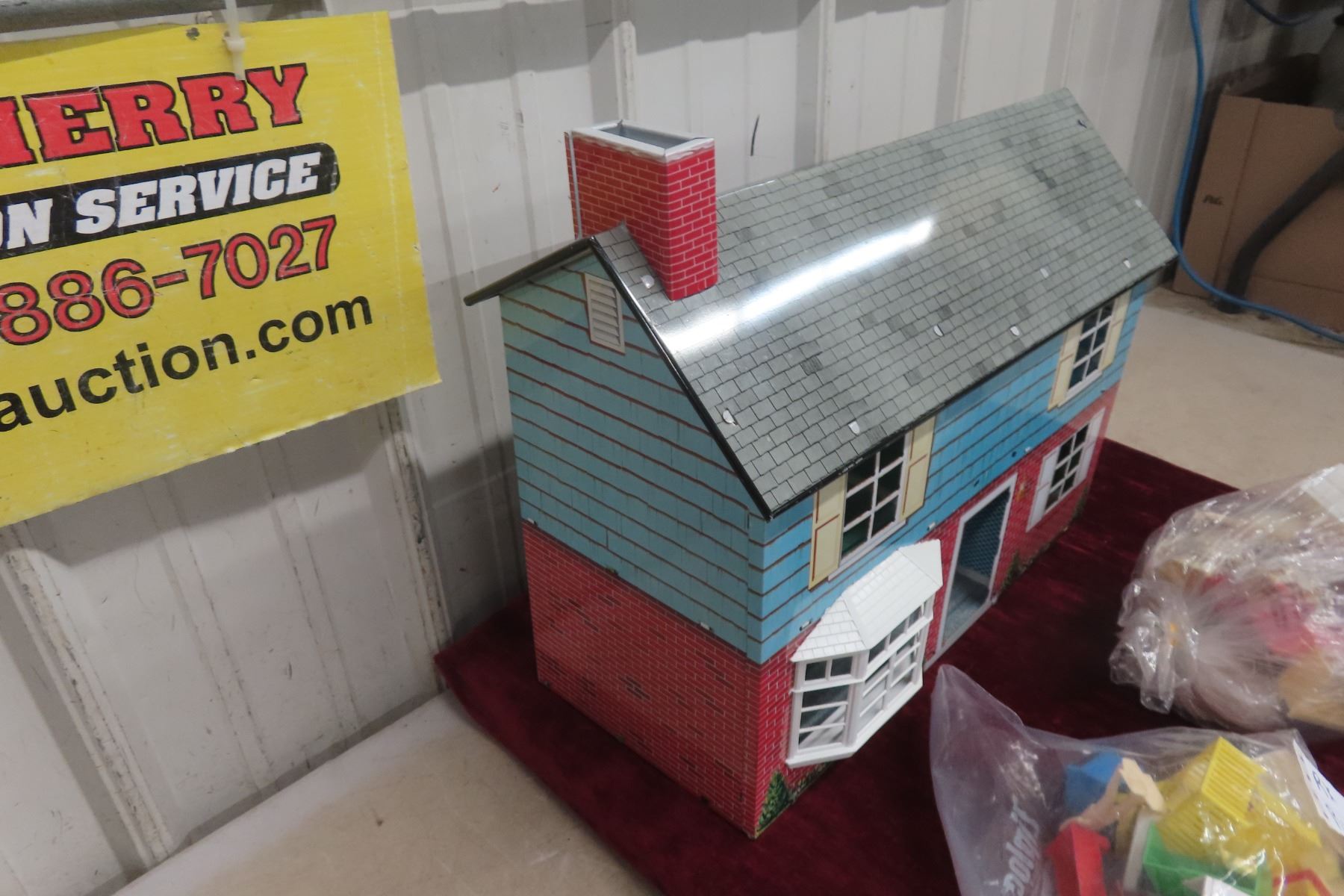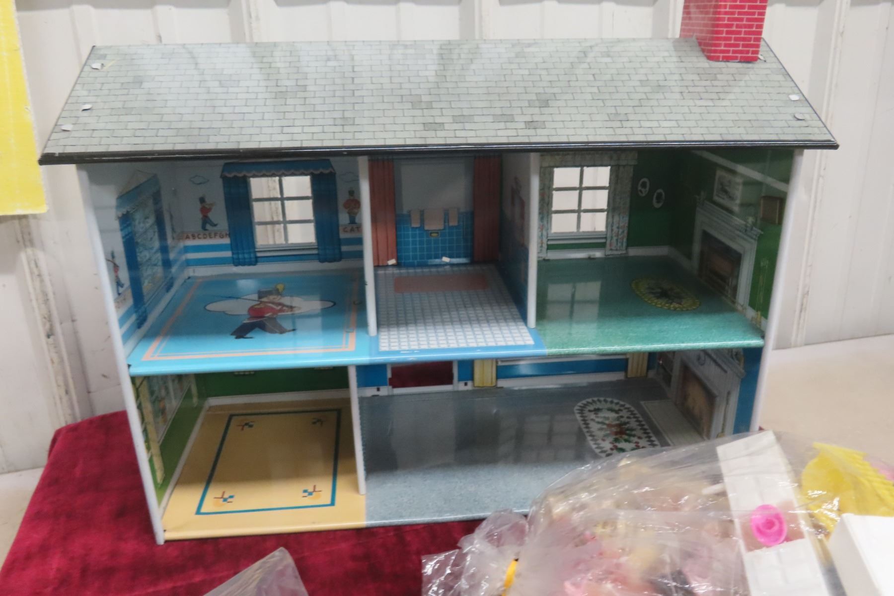 Vintage Metal Dollhouse with Plenty of Accessories