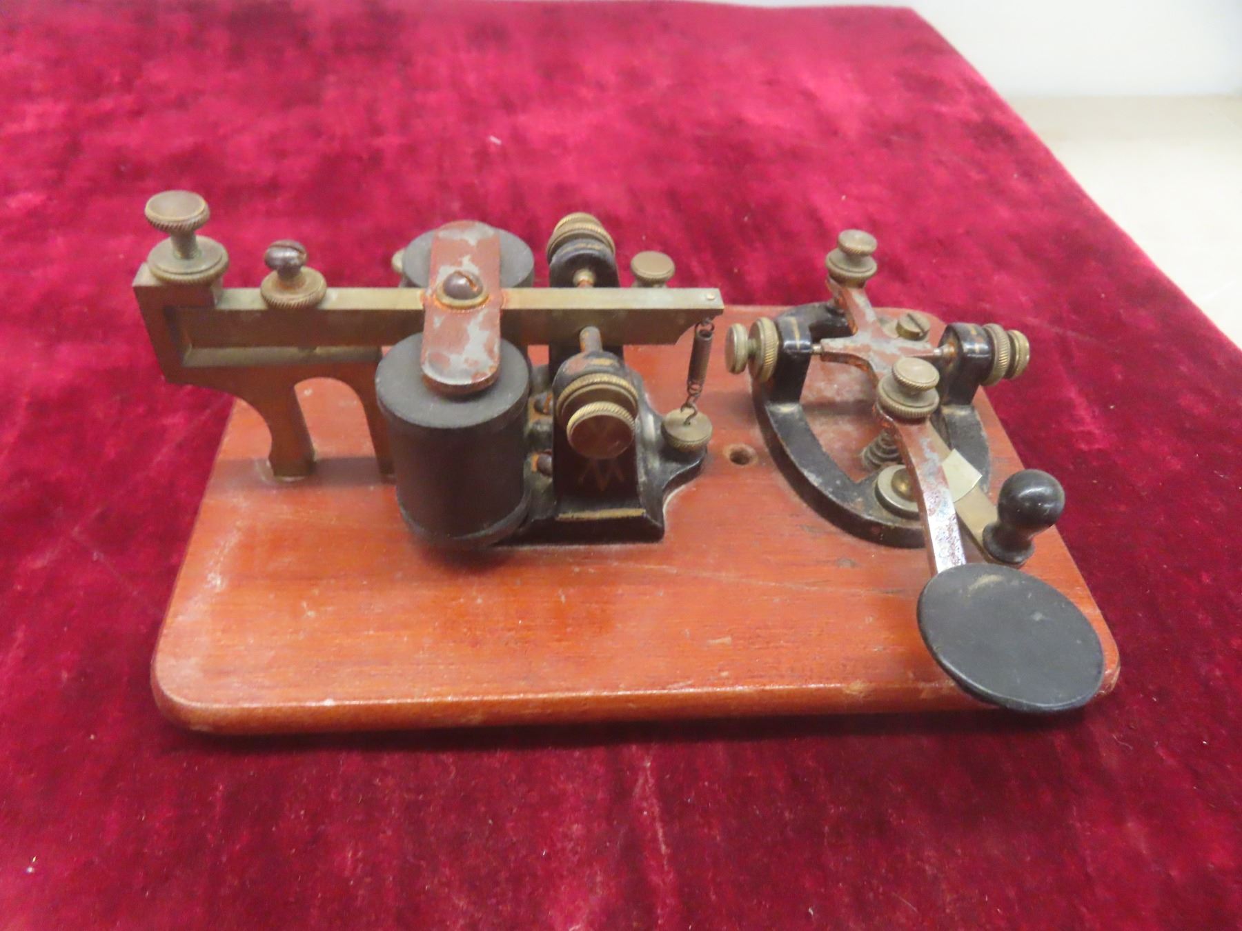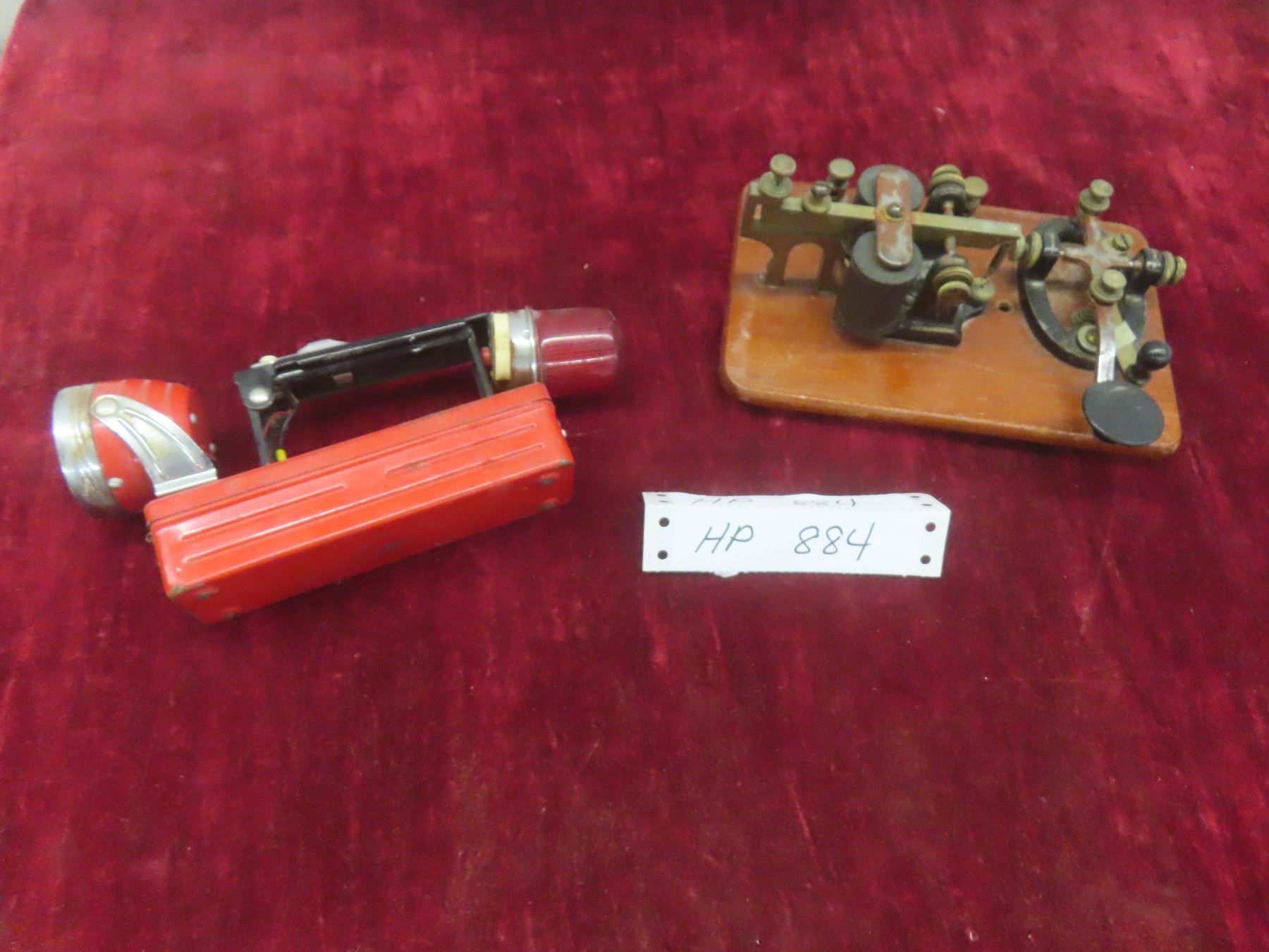Vintage Metal Lantern with Dual Light and Antique Telegraph Machine