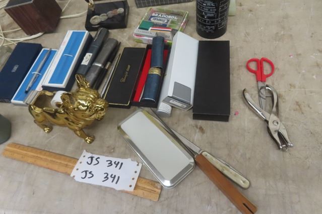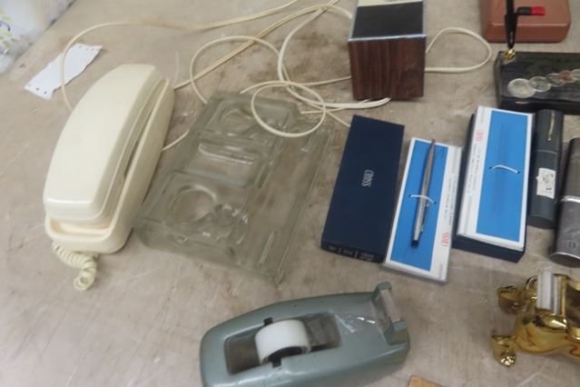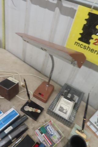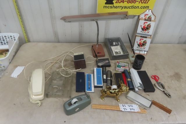 Vintage Metal Letter Holder, Bulldog Tape Dispenser, Desk Lamp, Realistic Desk Cube, Pen Set