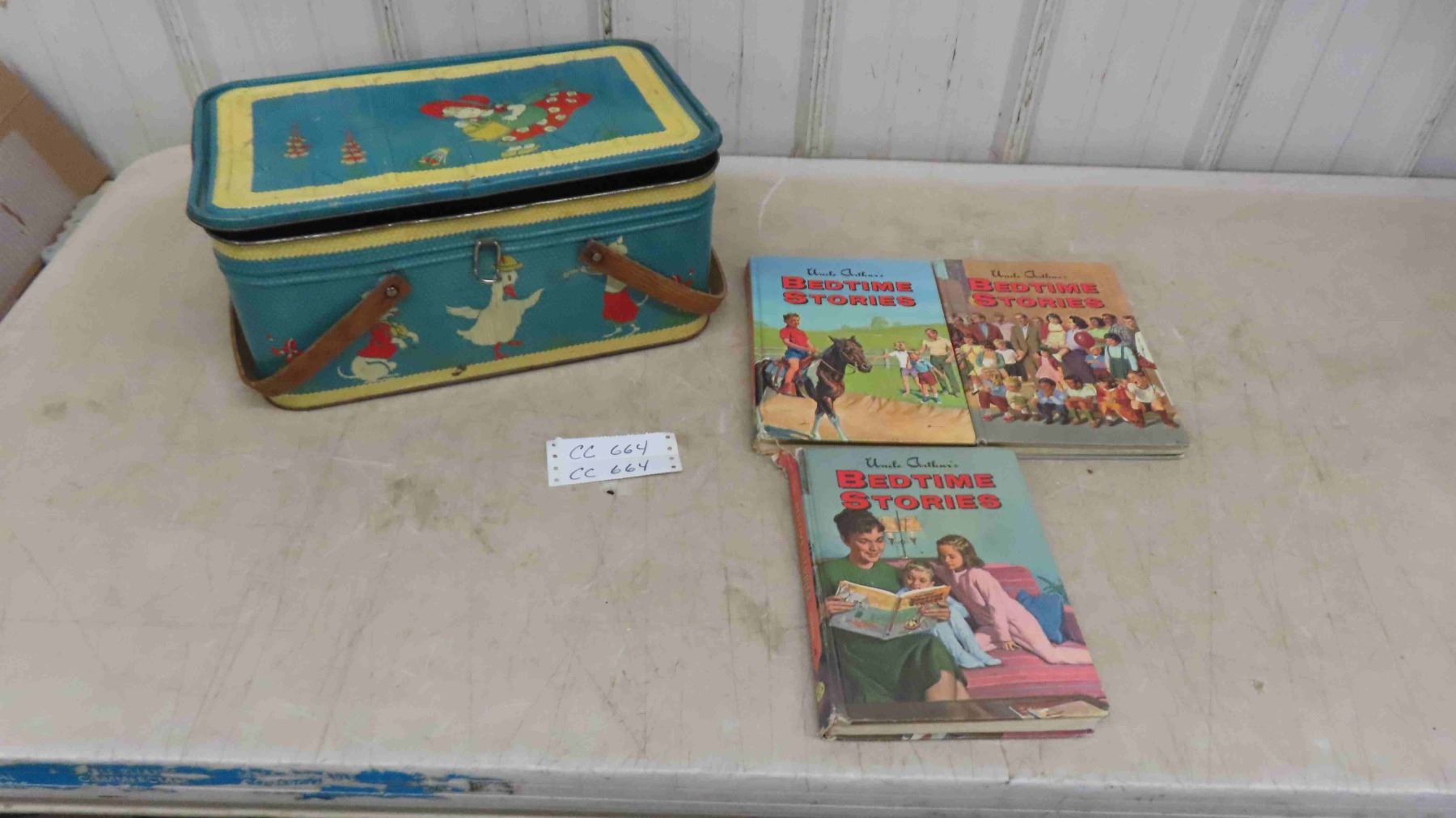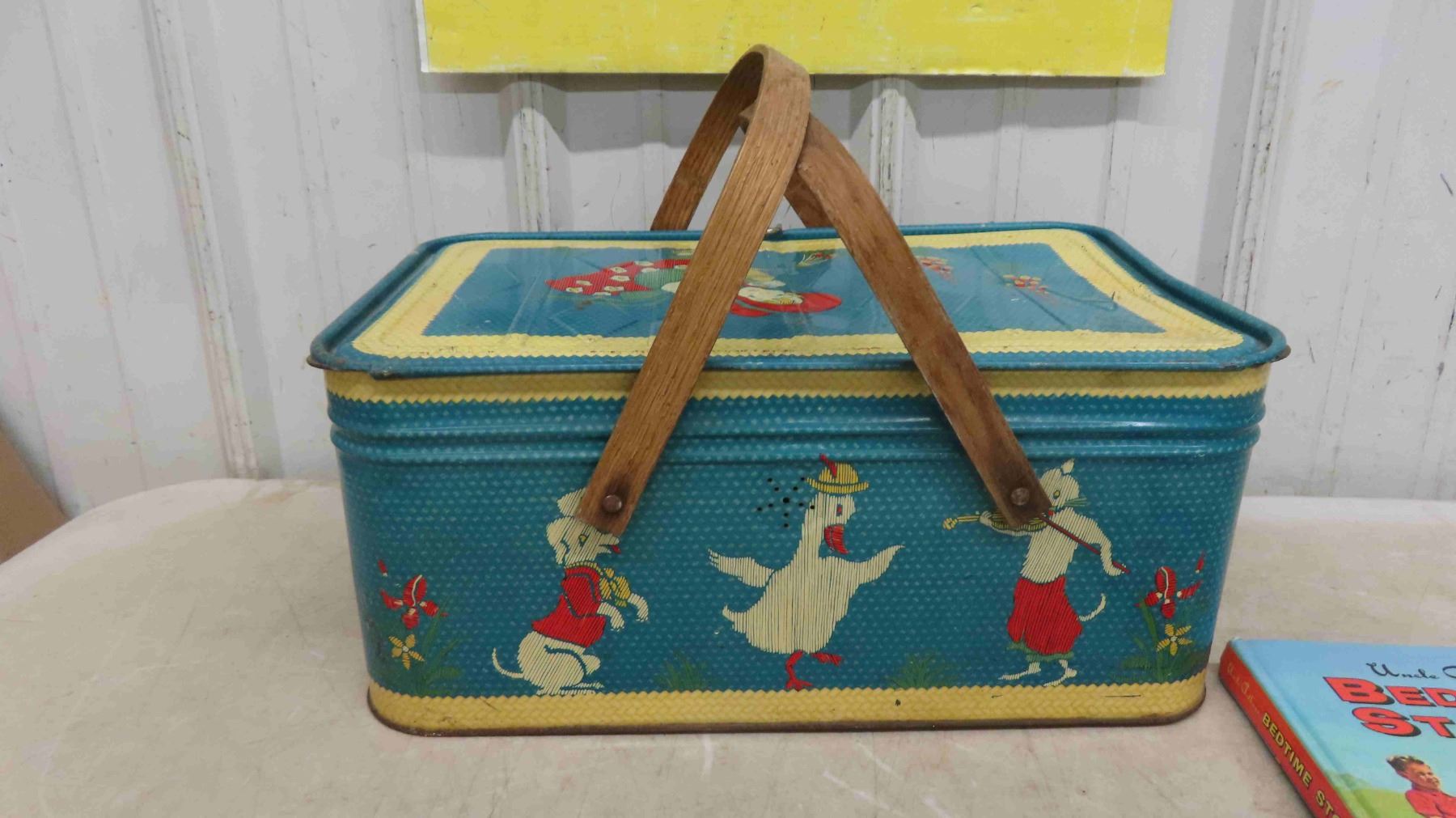 Vintage Metal Picnic Basket 3 Uncle Arthurs Bedtime Story Books