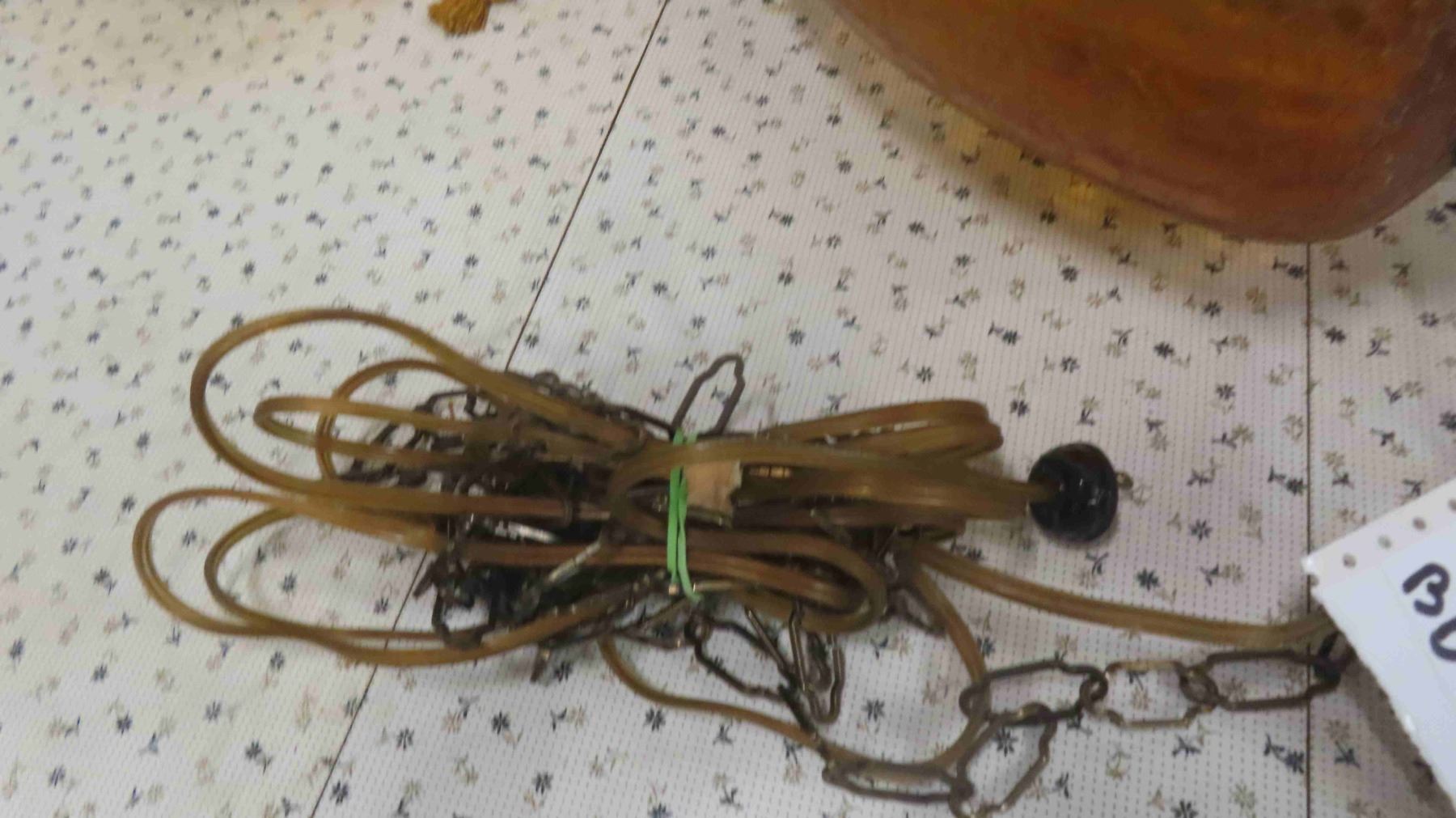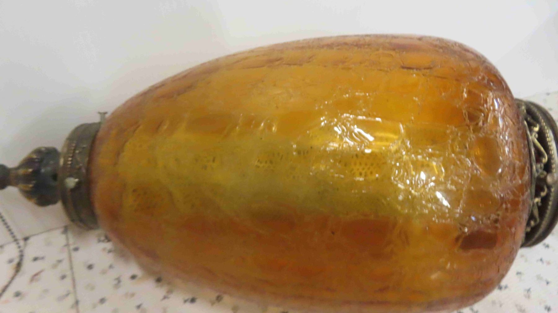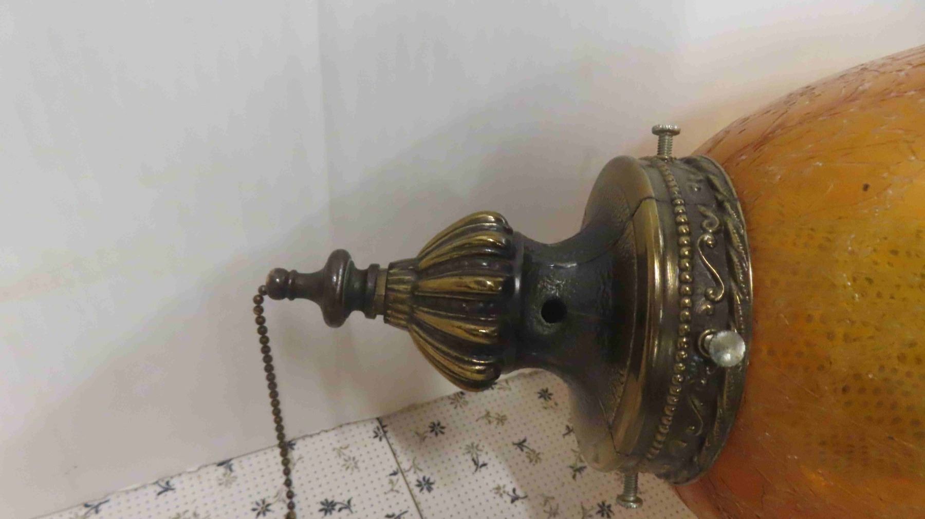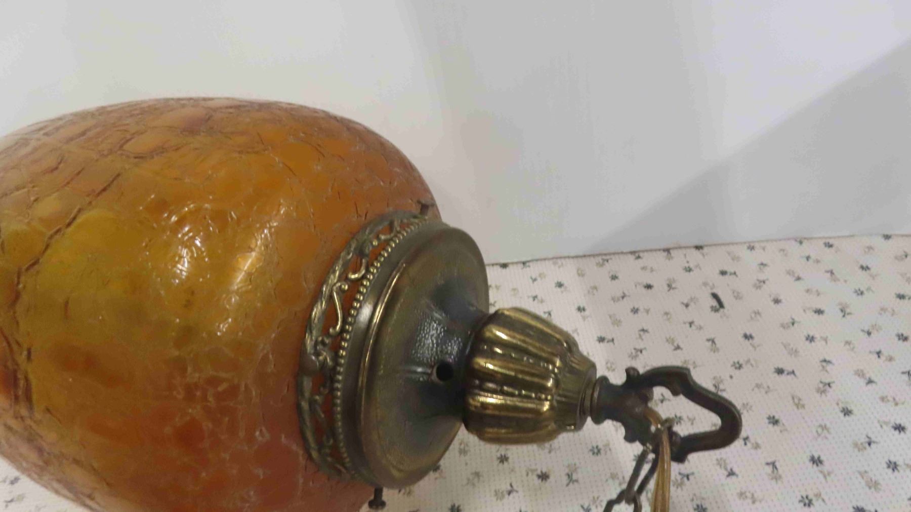 Vintage Mid Century Hanging Swag Lamp Brass with Amber Glass Shade - Shade is 25'' High , Has Chain with Plug - Excellent Condition