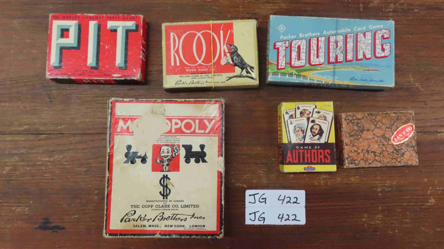 Vintage Monopoly Game Patented 1936 + 5 Old Card Games ; Rook, Touring, Pit, Authors, Can-U-Go Crossword Game