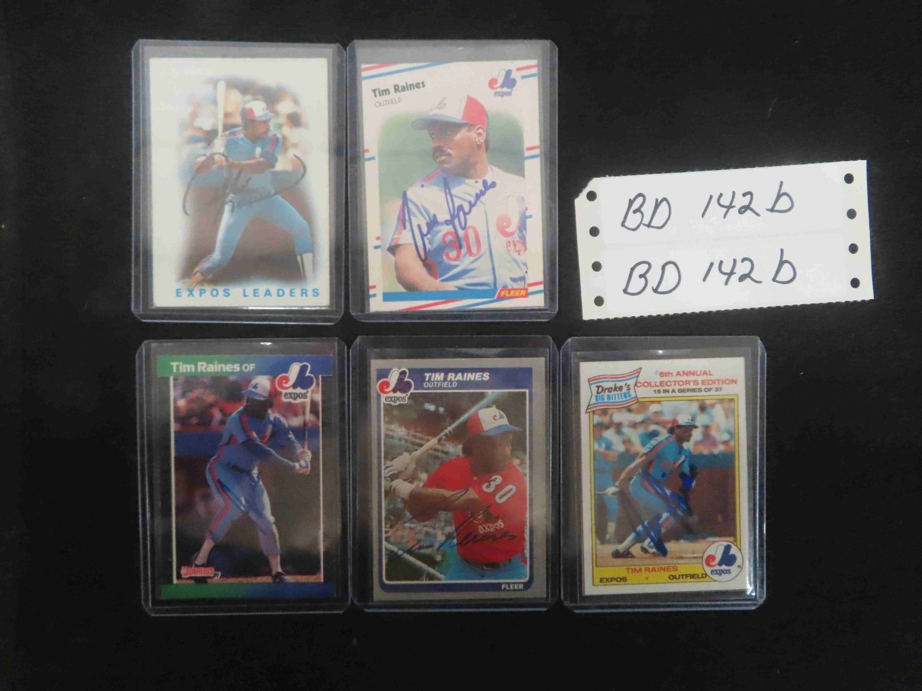 Vintage Montreal Expos Autographed Card Lot ; 4 Tim Raines, (1) Andre Dawson - No Certificates
