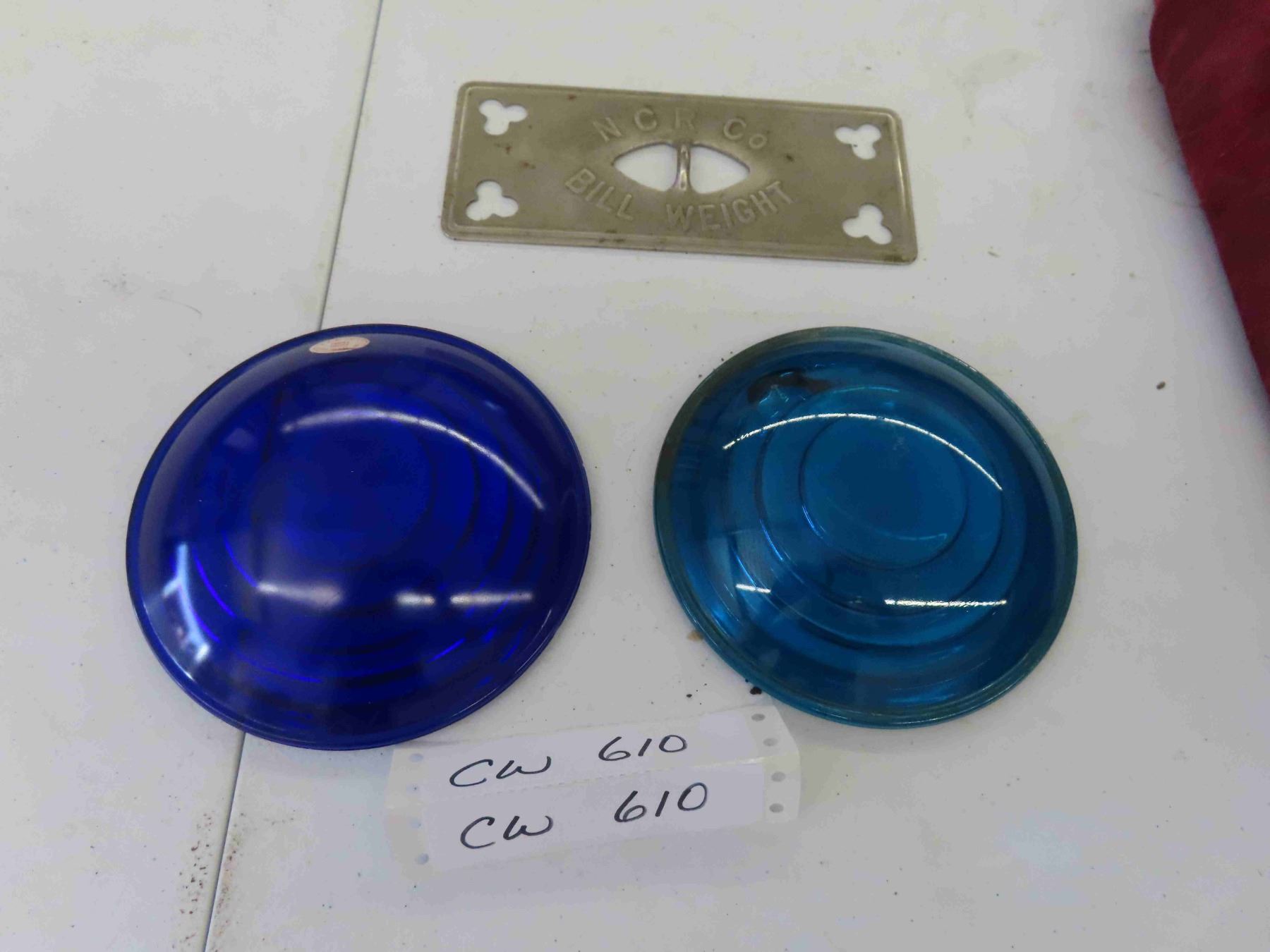 Vintage NCR Co Bill Weight , 2 Glass Lens for Railway Signal Blue/Purple