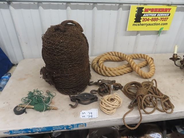 Vintage New Old Stock, FIshing Net Still in Original Shipping Bale, Plus Rope & Pulleys