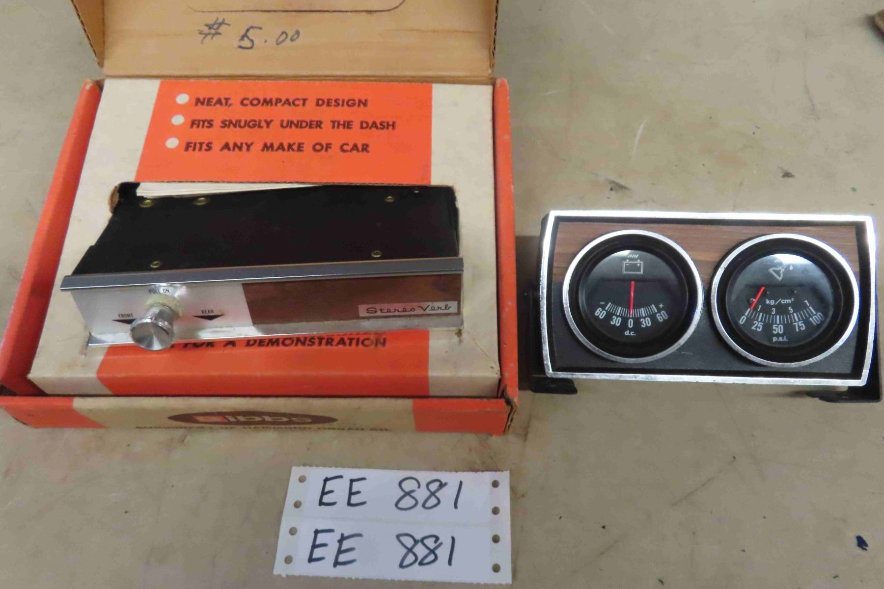 Vintage New Old Stock Oil Pressure & Battery Gauges, Gibbs Stereo Reverberation Model 550 in Box