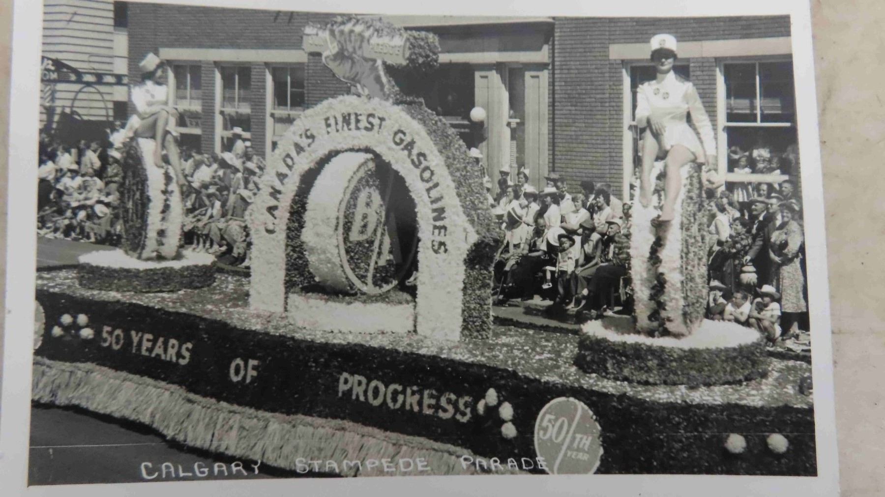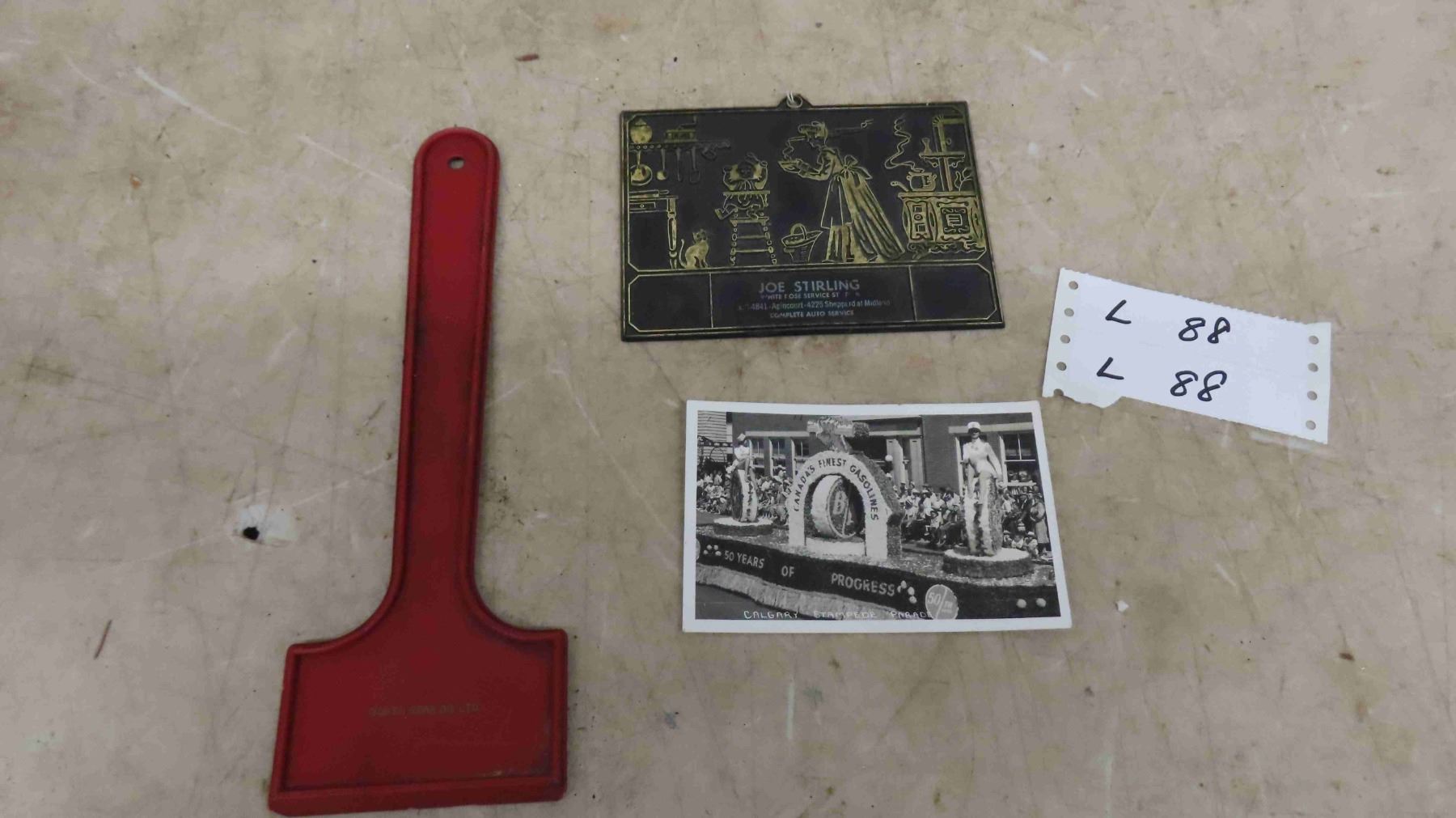 Vintage North Star Oil Ltd Scraper, Vintage Joe Stirling White Rose Service Plastic Plaque, Vintage Postcard Calgary Stampede Parade BA Gasoline