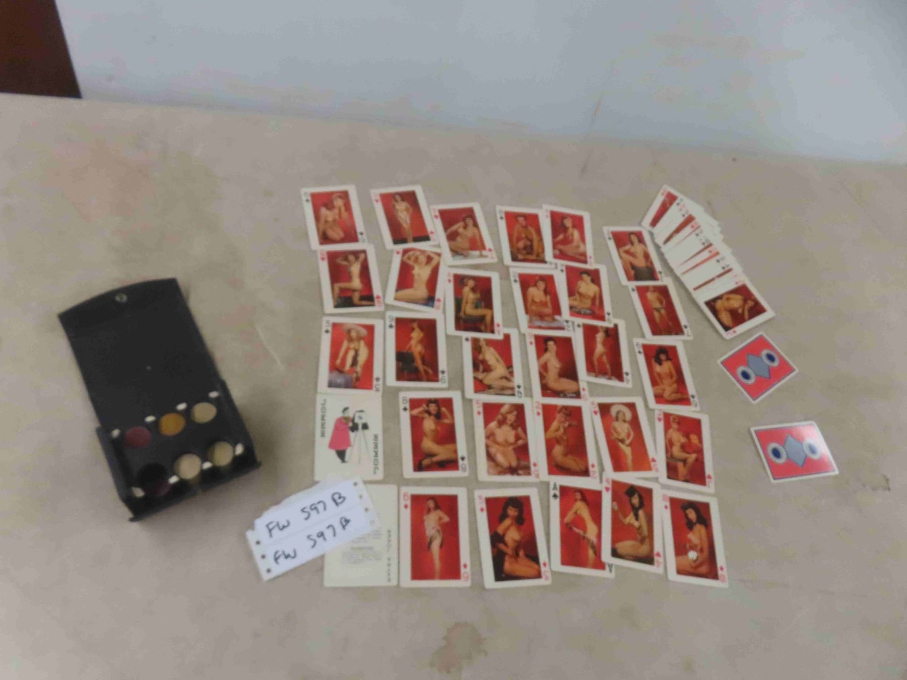 Vintage Nudey Playing Cards with Leather Case & Chips