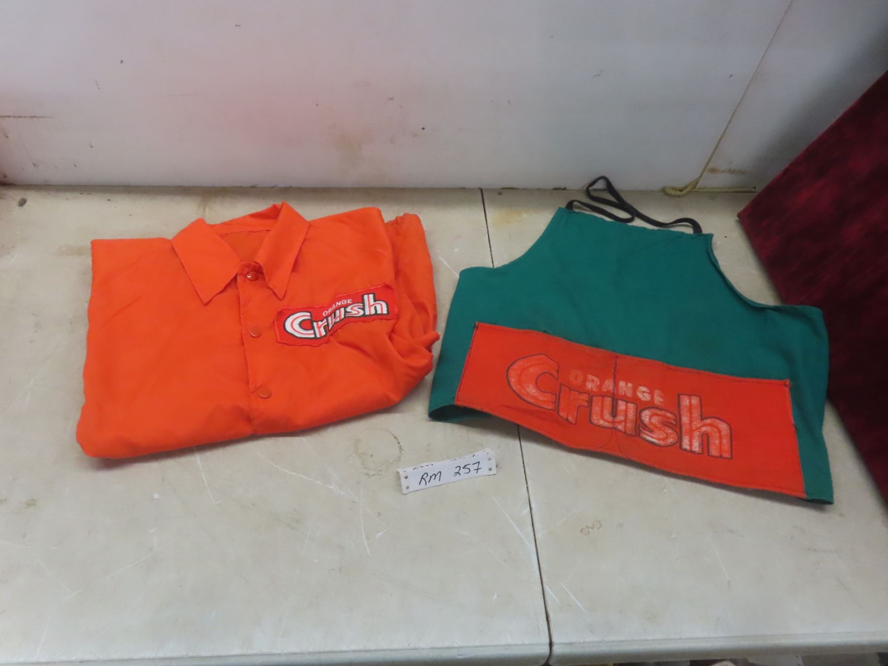 Vintage Orange Crush Apron and Staff  Shirt, Large Size and Wind Breaker