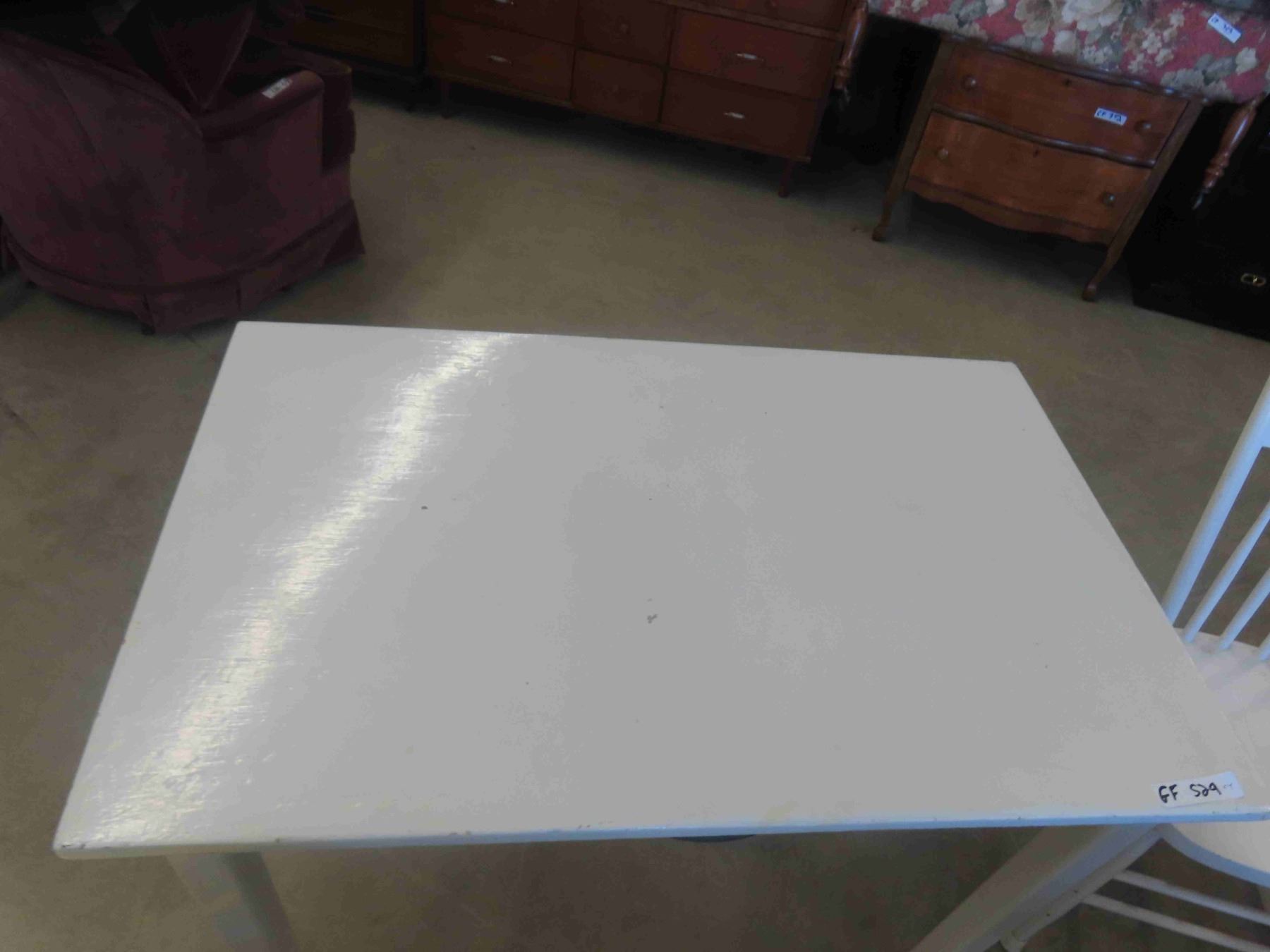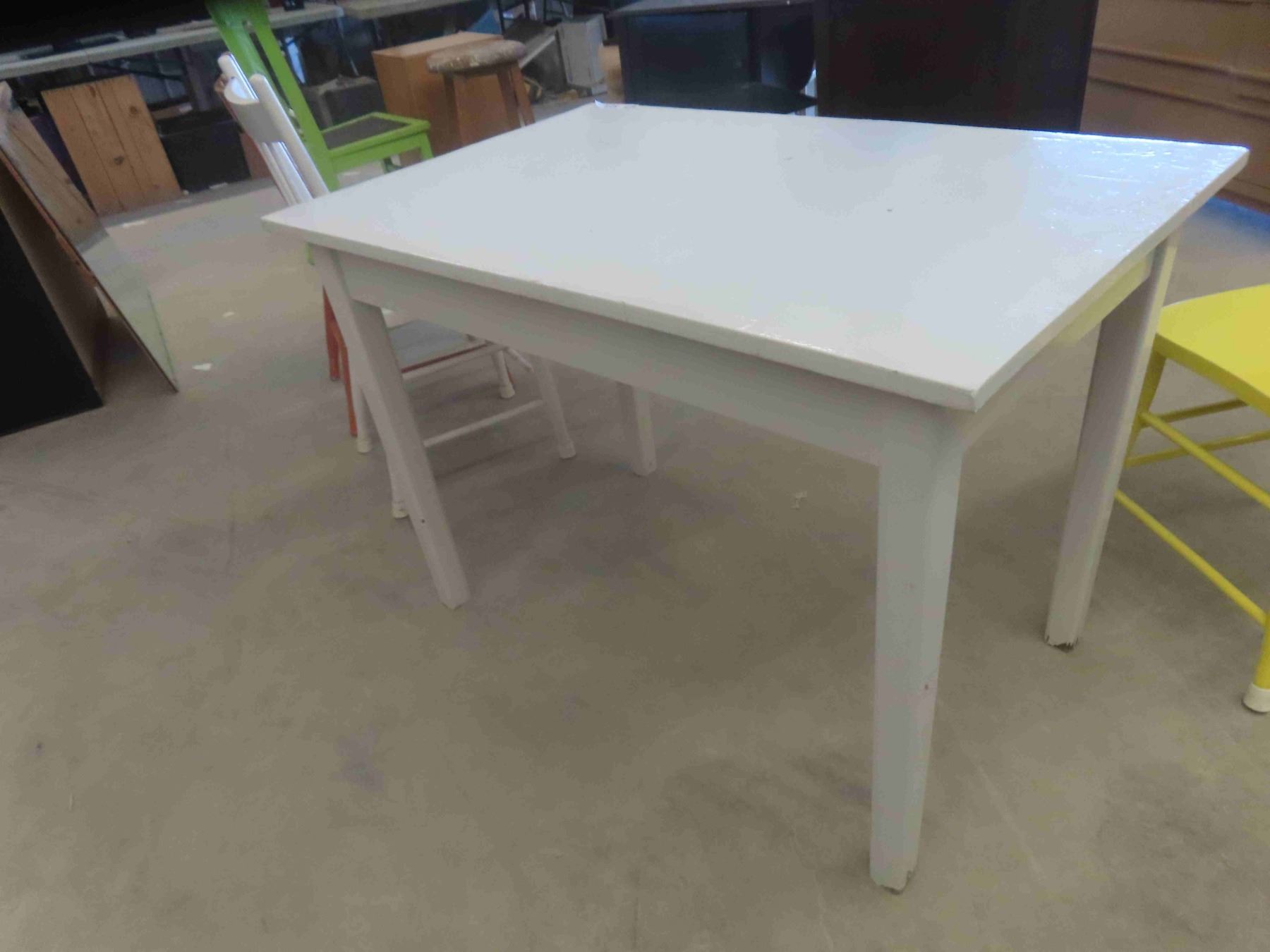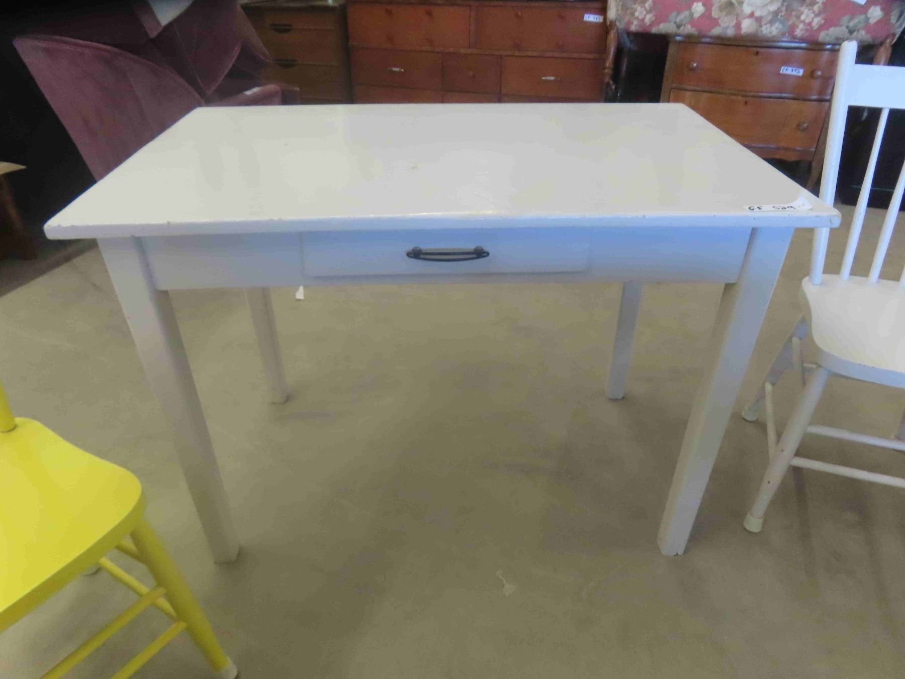 Vintage Painted Table with Drawer 29'' x 42'' x 27'' , 3 Painted Chairs