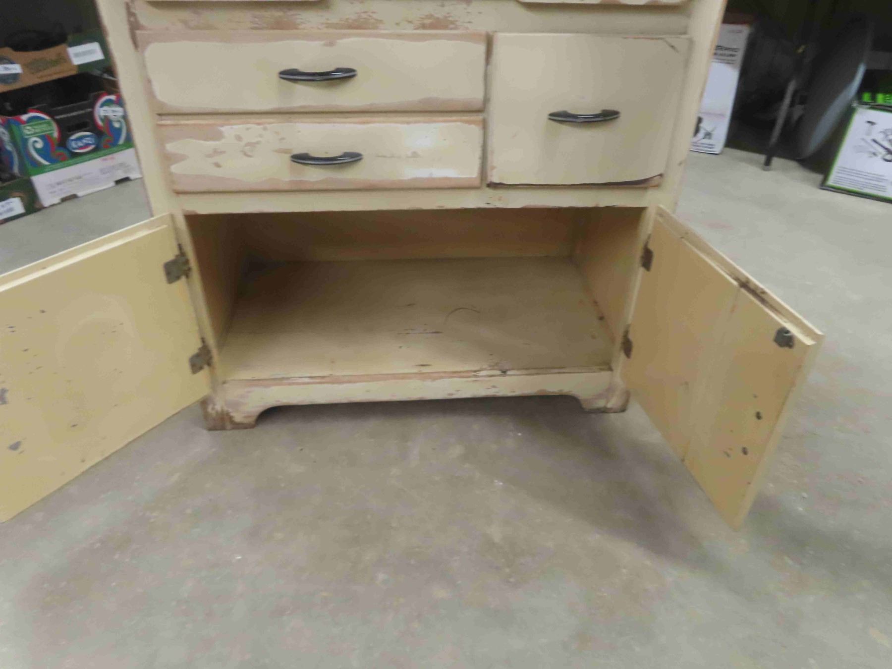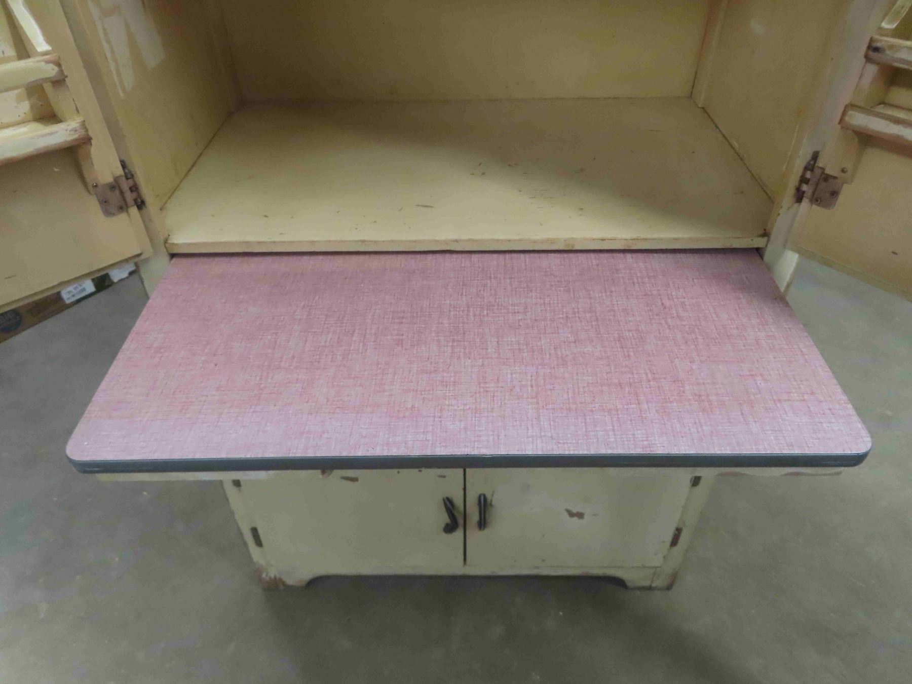Vintage Painted Wooden Kitchen Cupboard with Pull Out Table 20" x 34" x 67"