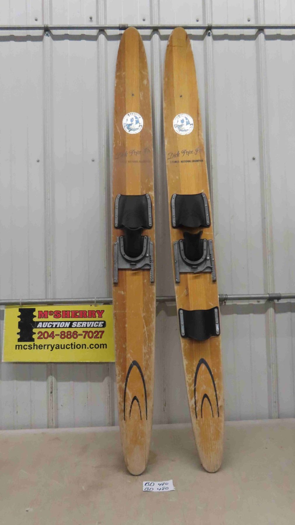 Vintage Pair of Cypress Gardens Water Skis - Dick Pope Jr. Signature Series- Wooden, 67" Long