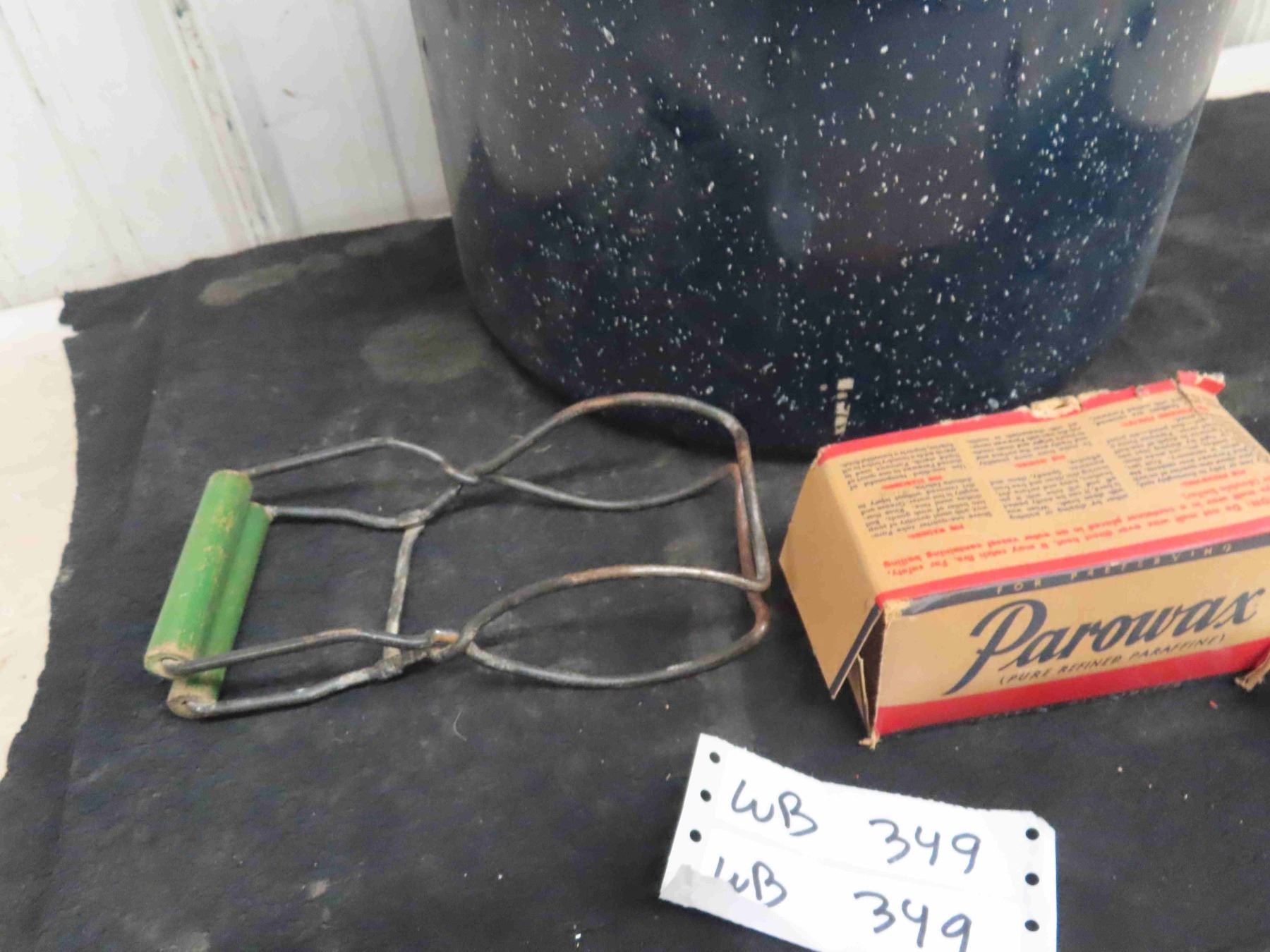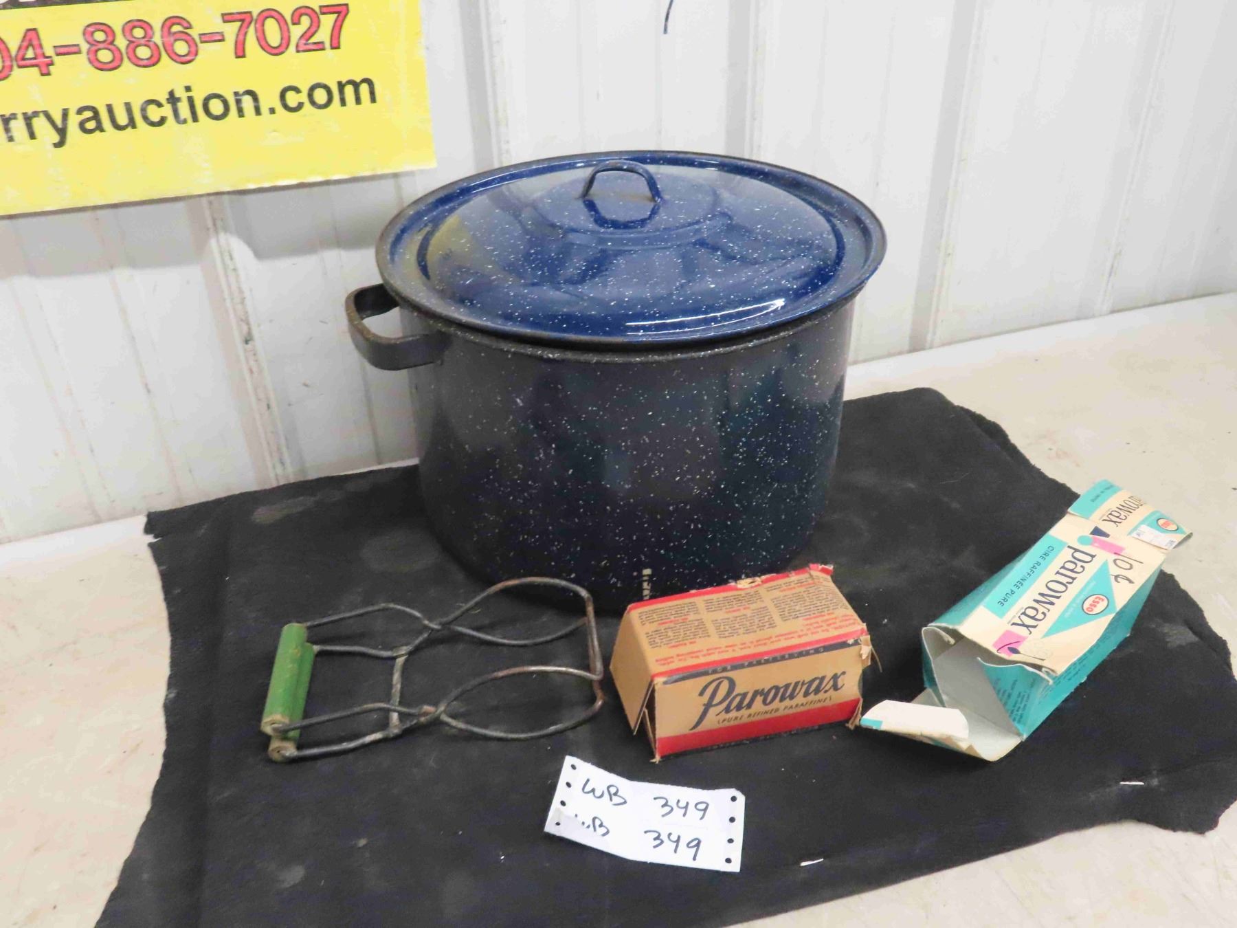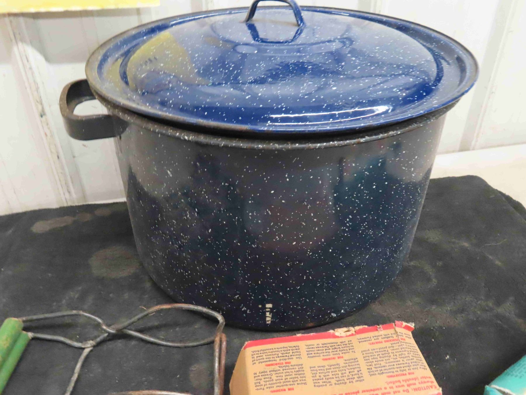 Vintage Pickling Granite Pot with Canning Wax & Jars Handle