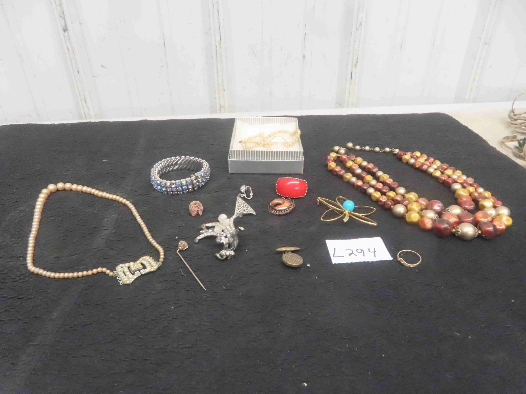 Vintage Pieces of Jewelry ; Bracelet, Brooch, Necklace & Gold Ring with 14KT Marking