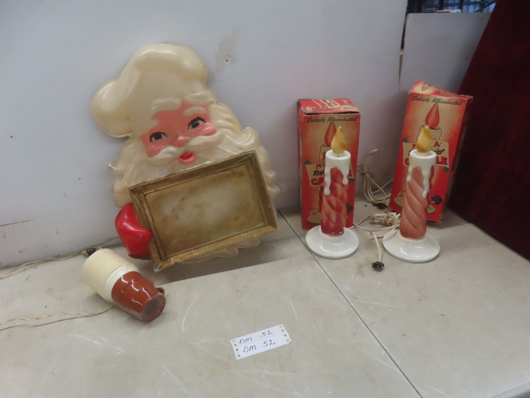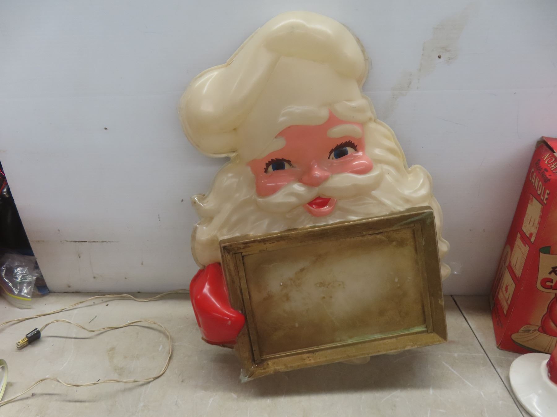 Vintage Plastic Santa Wall Hanging and Two Noma Rope Frost Candles with Original Boxes