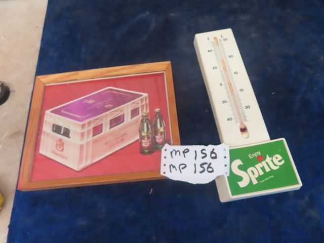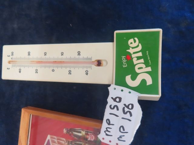 Vintage Plastic Sprite Thermometer 5" x 13" & Framed Paper Canada Dry Advertising