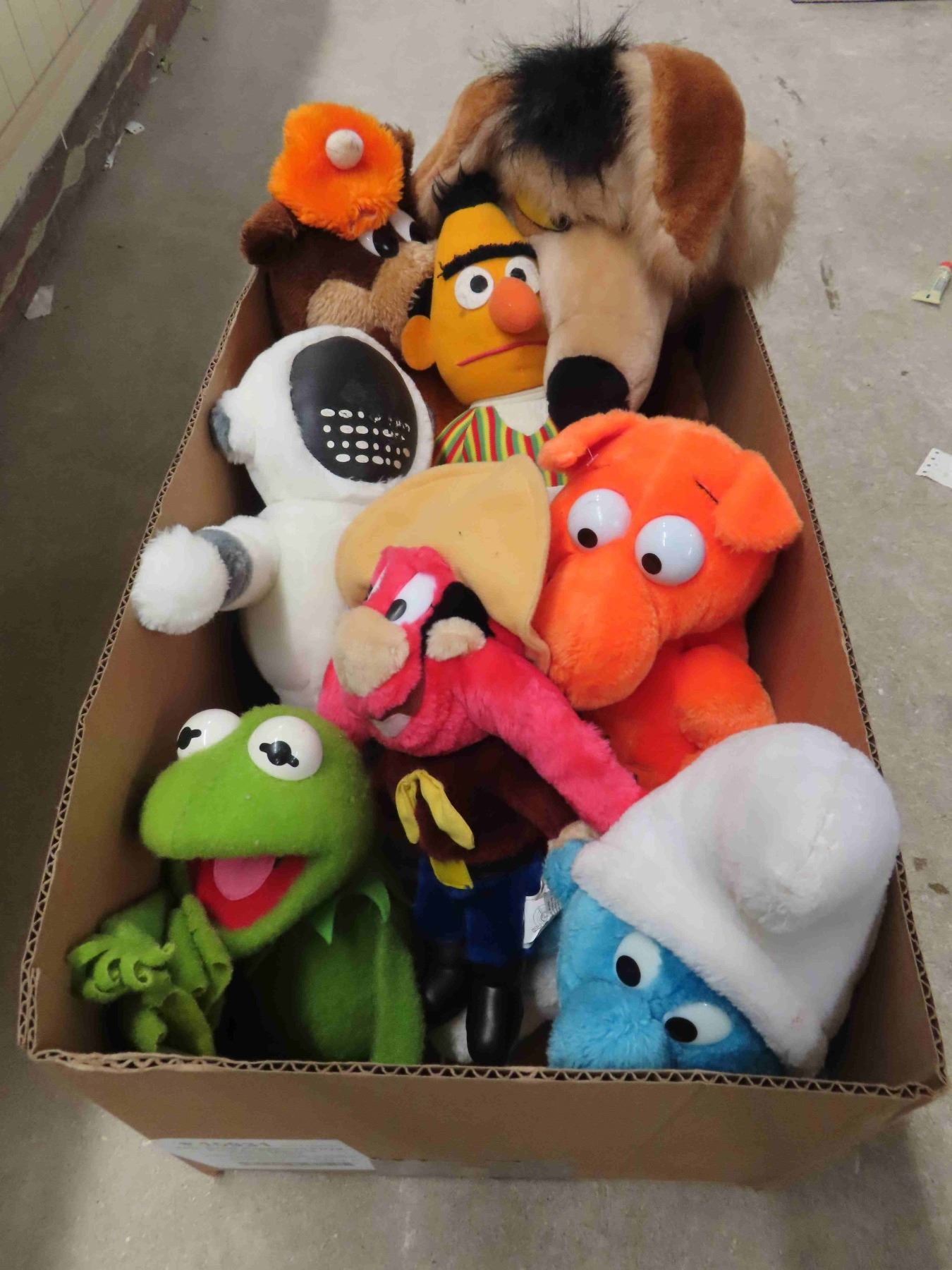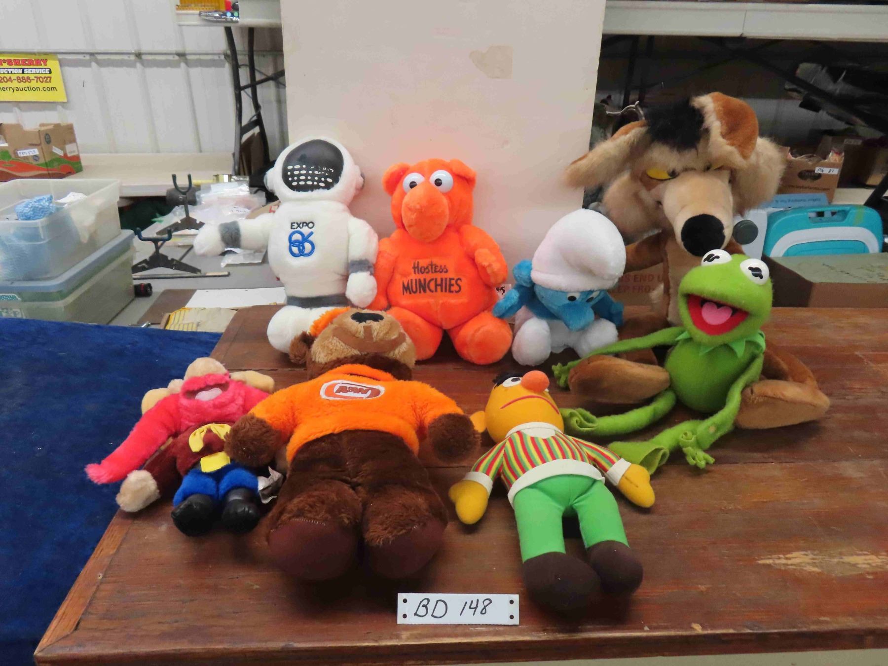 Vintage Plush Character Lot; Kermit, Smurf, A&W Root Beer, Yosemite Sam, Road Runner, Bert, Munchies - All Clean + Fresh