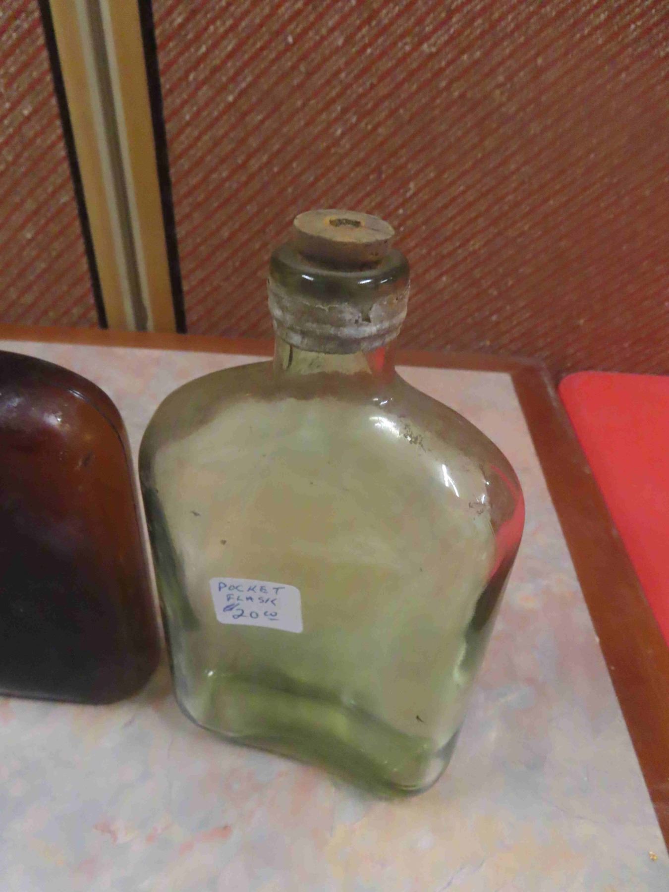 Vintage Pocket Liquor Flasks, 1 Has Cork, 1 Has Stopper - Over 100 Years Old