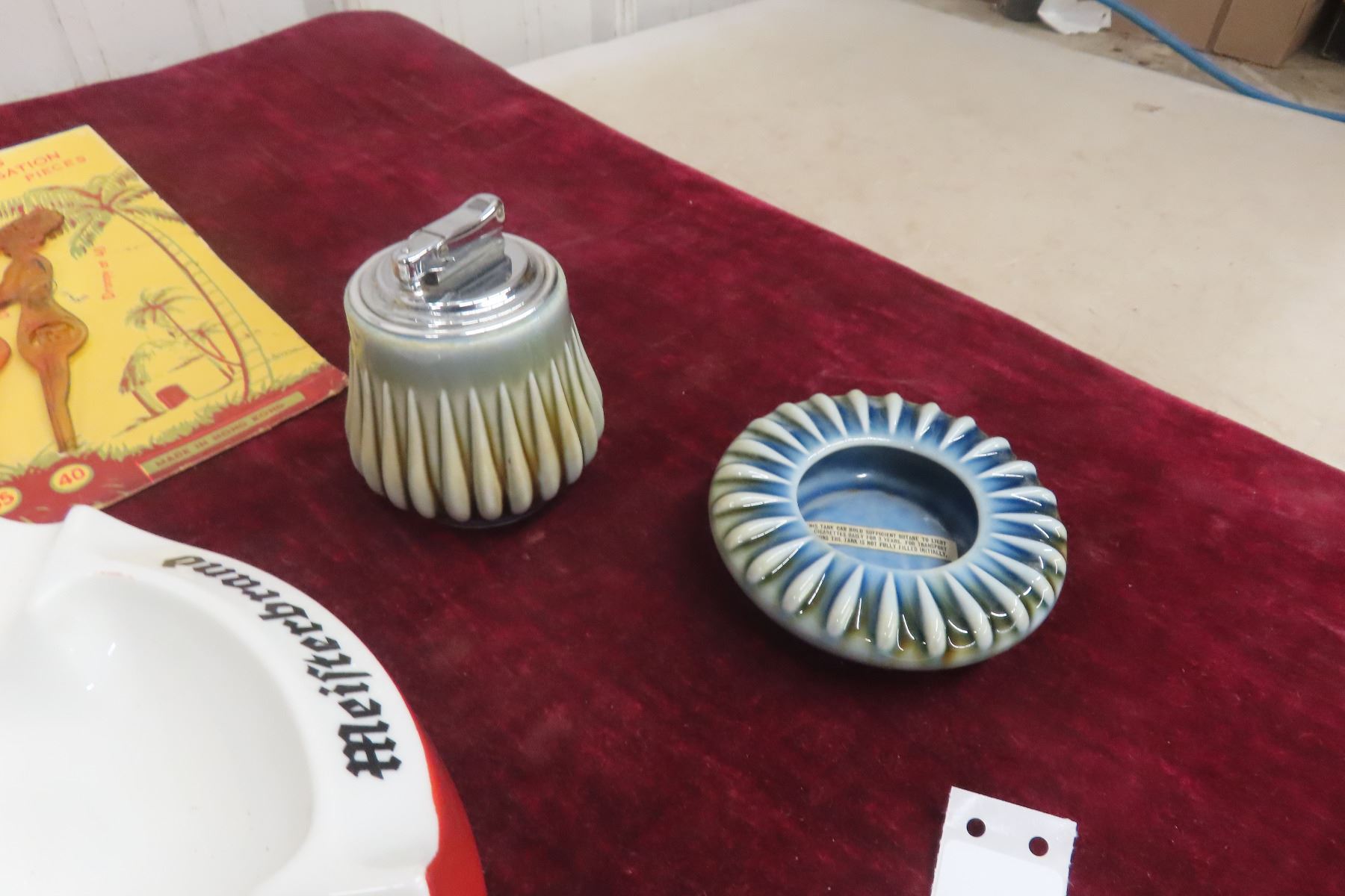 Vintage Porcelain Advertising Ashtrays, Lighter, Swanky Bar Stir Sticks