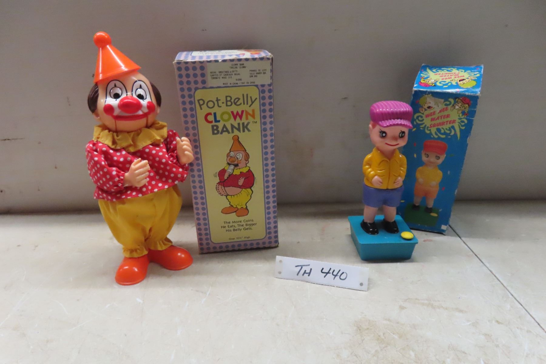 Vintage Pot Belly Clown Bank and Weewee Water Squirter Both with Original Boxes