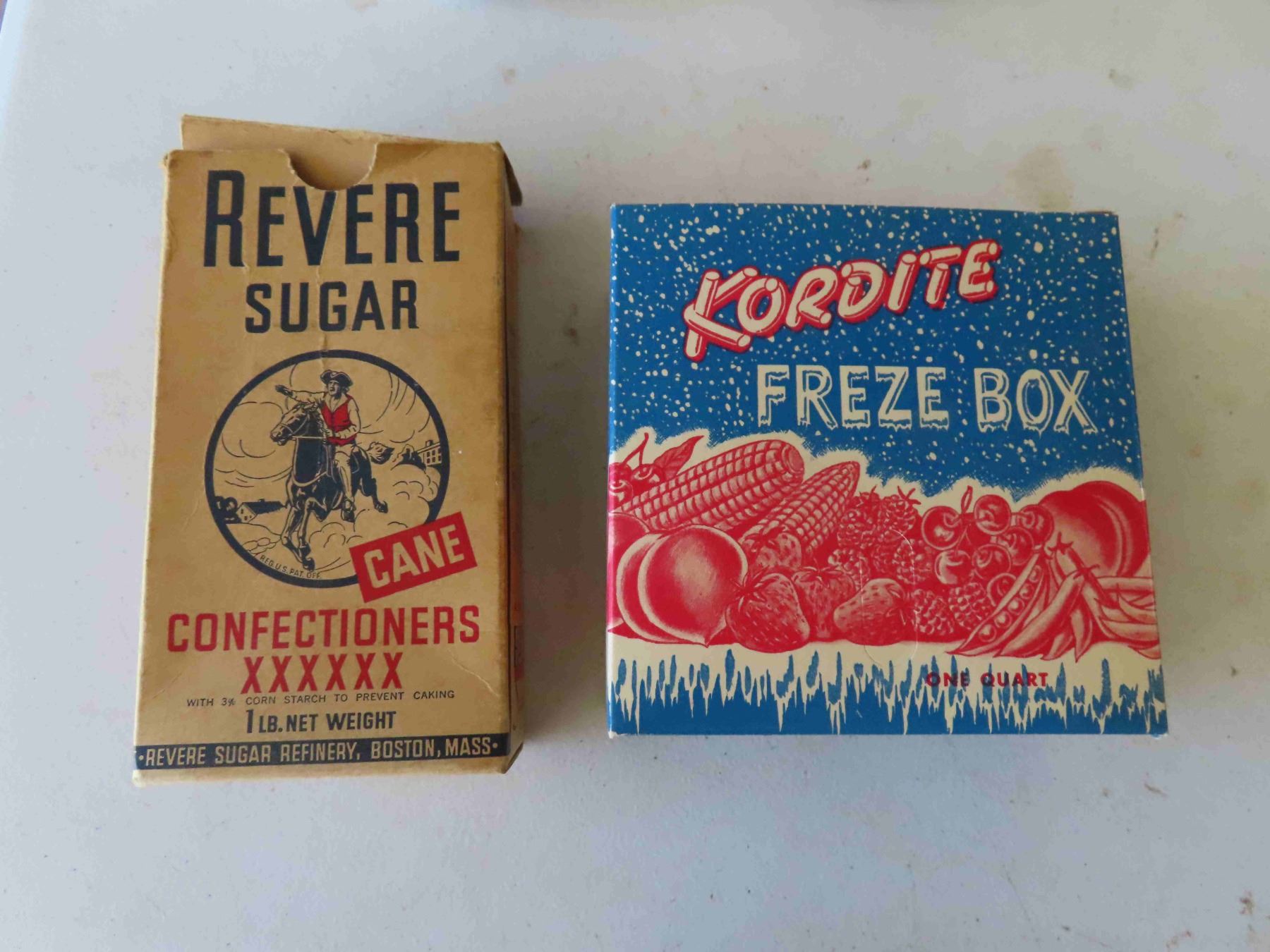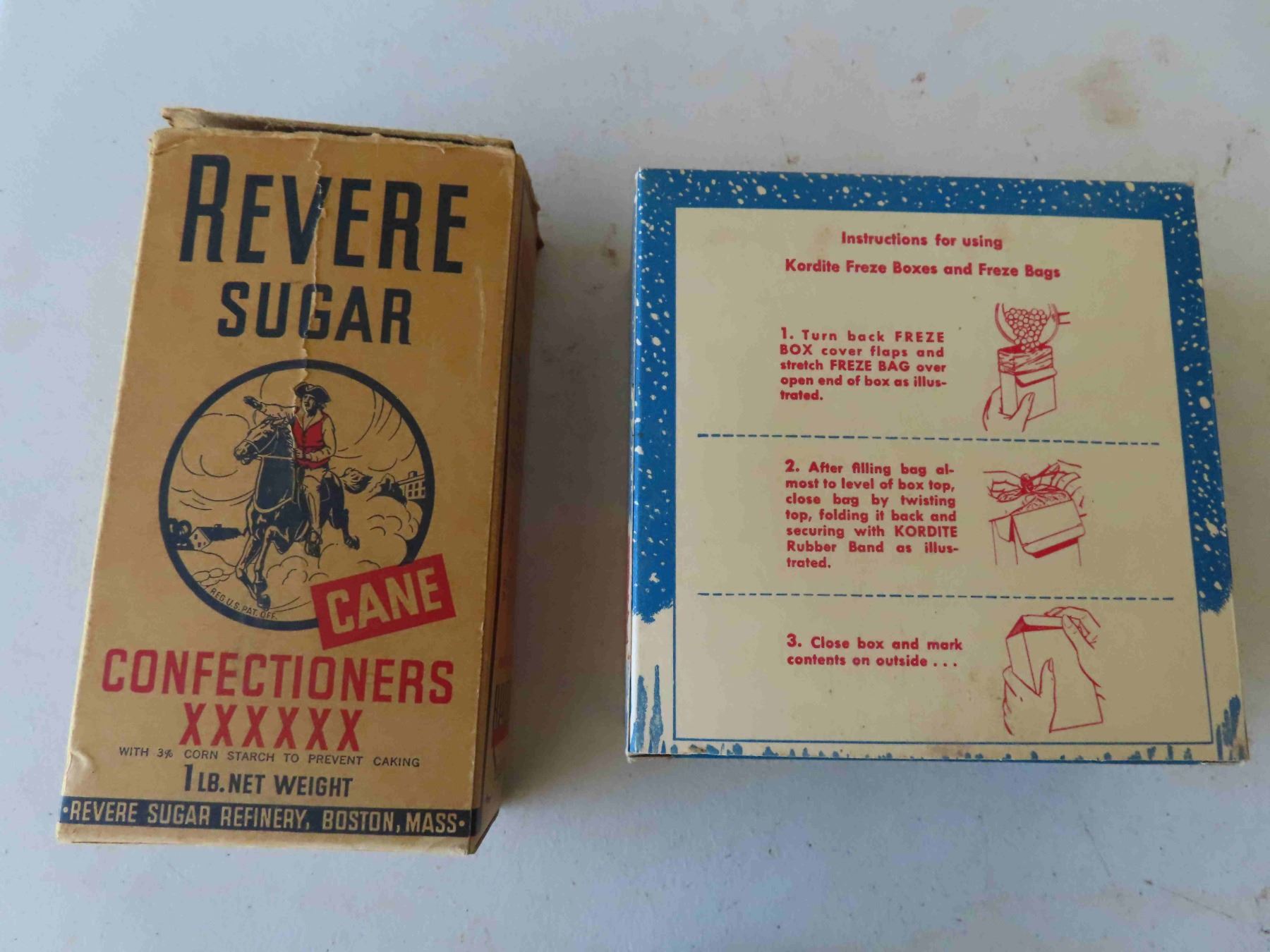 Vintage Products with Advertising : Revere Sugar , Kordite Freeze Box ,