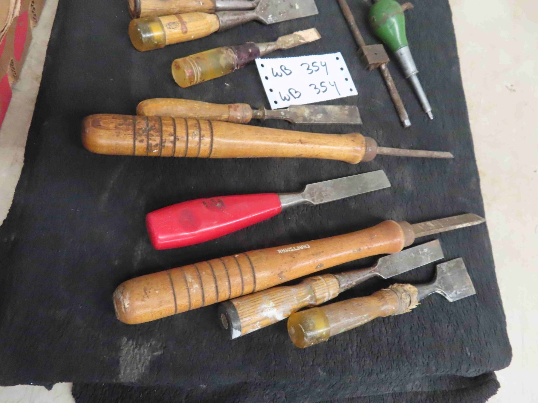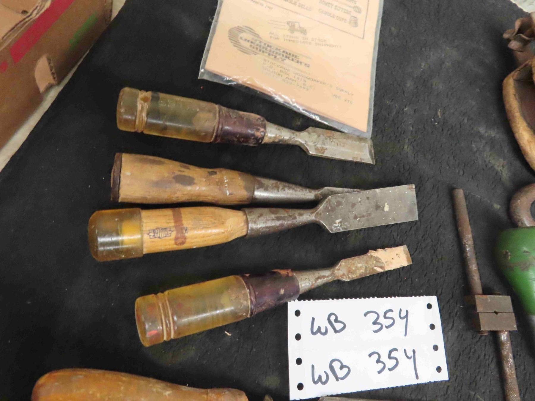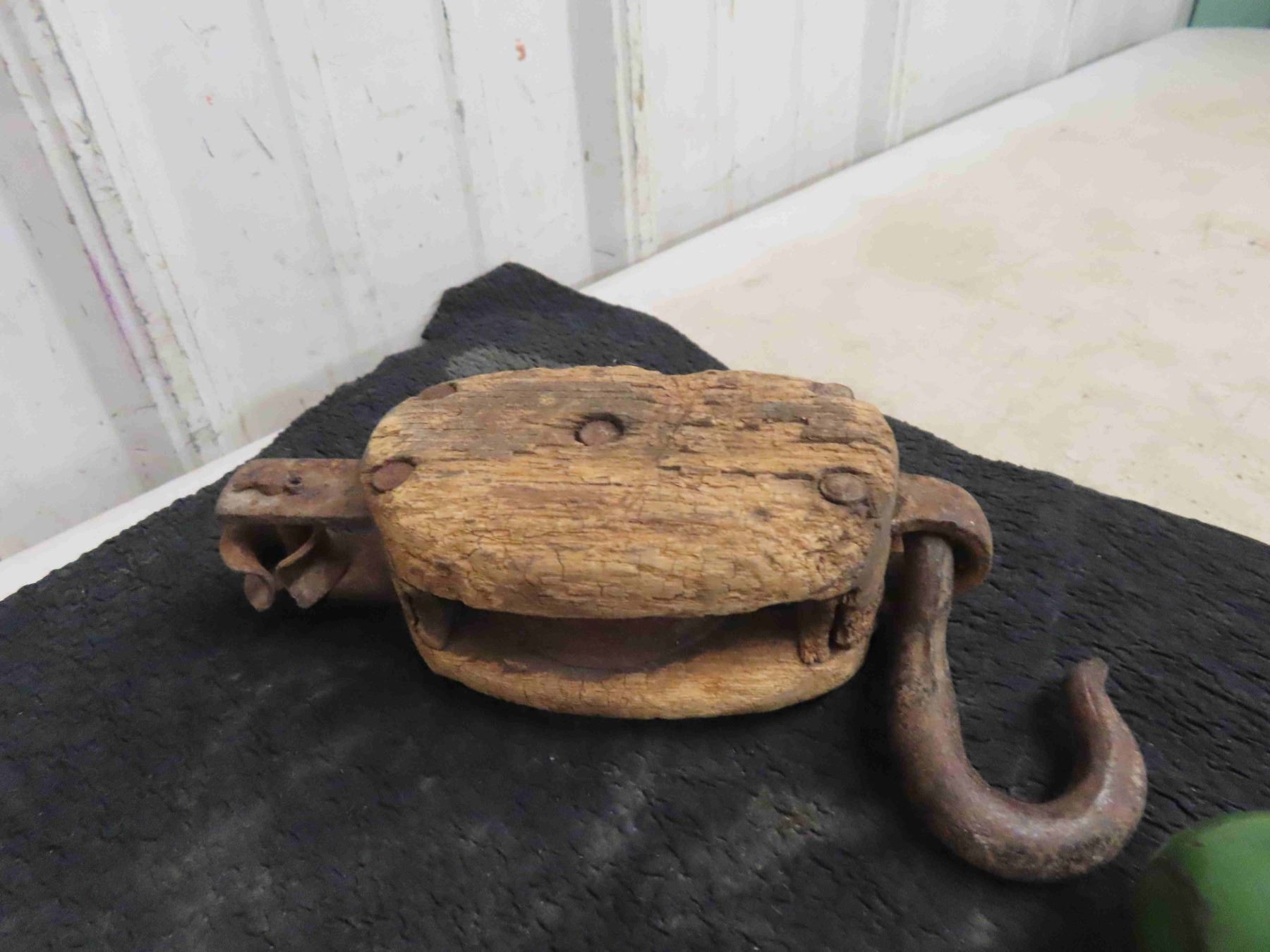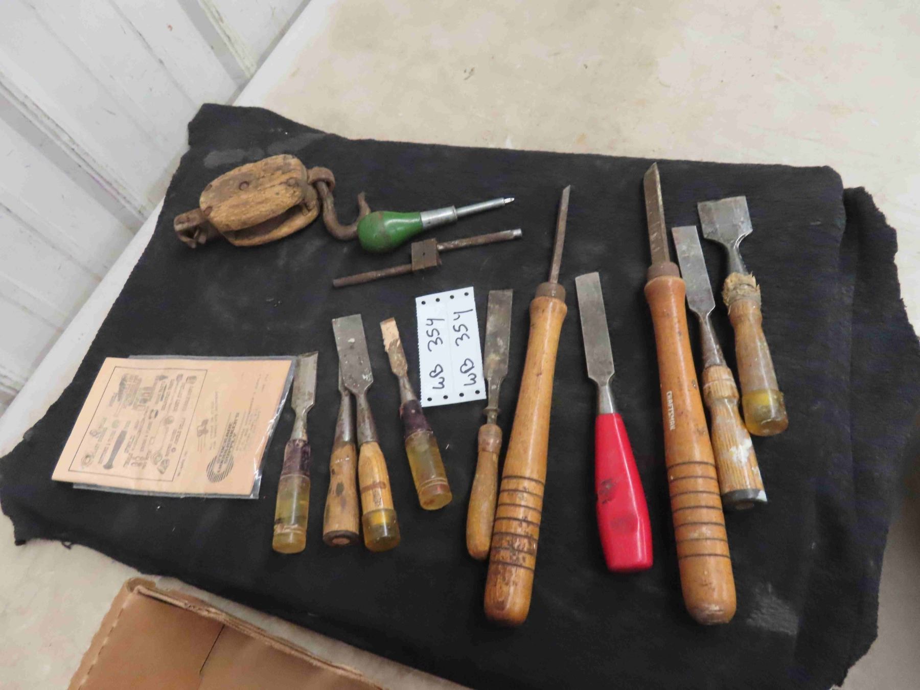 Vintage Pulley & 10 Wood Chisels & Tools