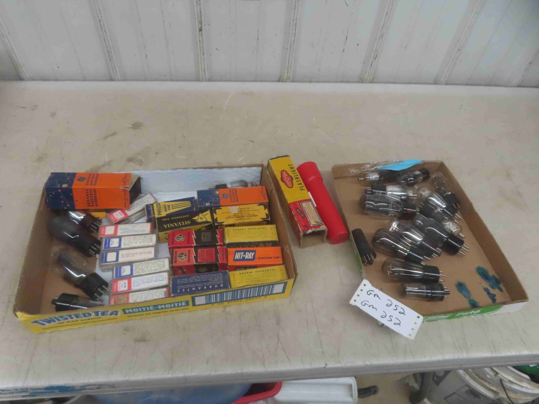 Vintage Radio Tubes (Half with Boxes, Old Flashlight with Box