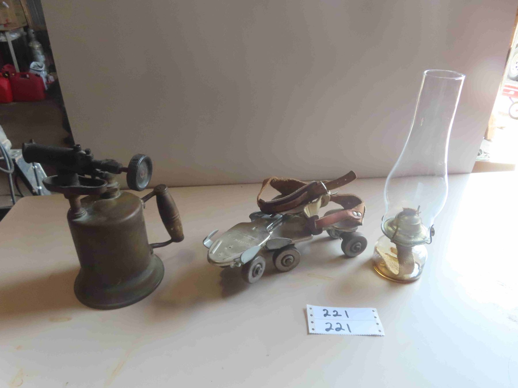 Vintage Roller Blades, Oil Lamp, Blow Torch