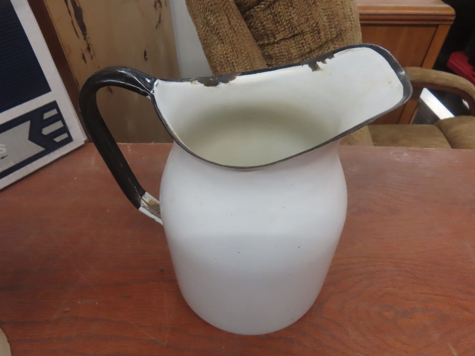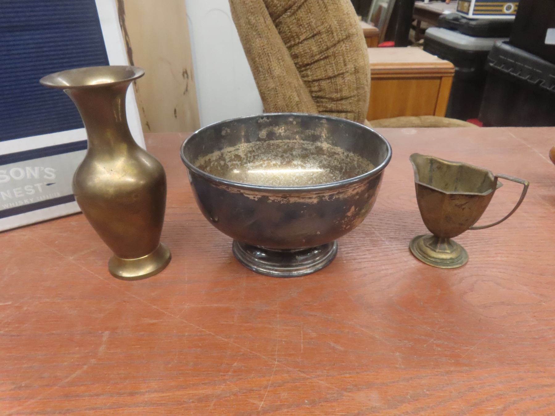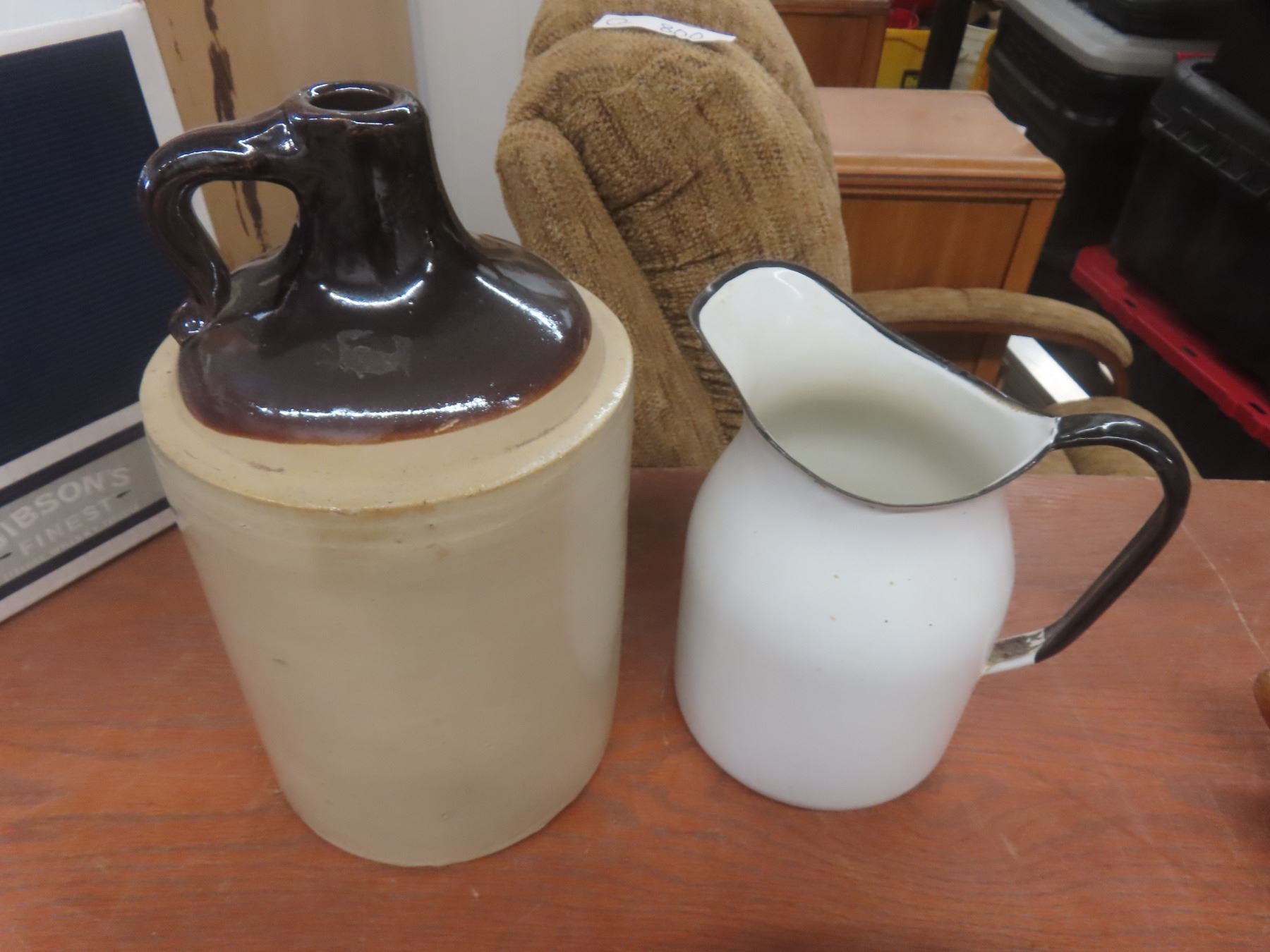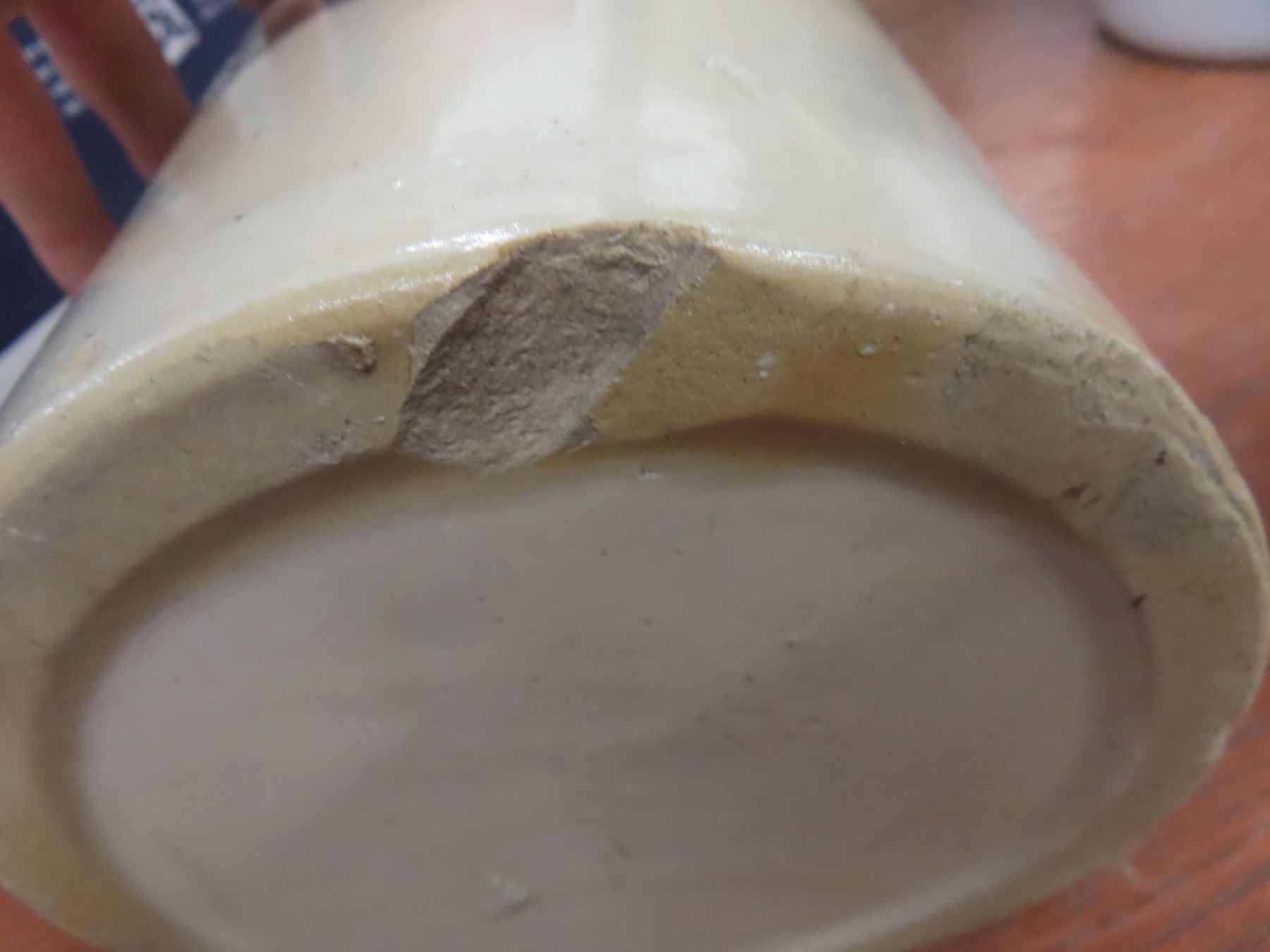 Vintage Rolling Pin, Stoneware Finger Jug, Cream Pitcher, A and W Baby Mug Silver Plated Bowl