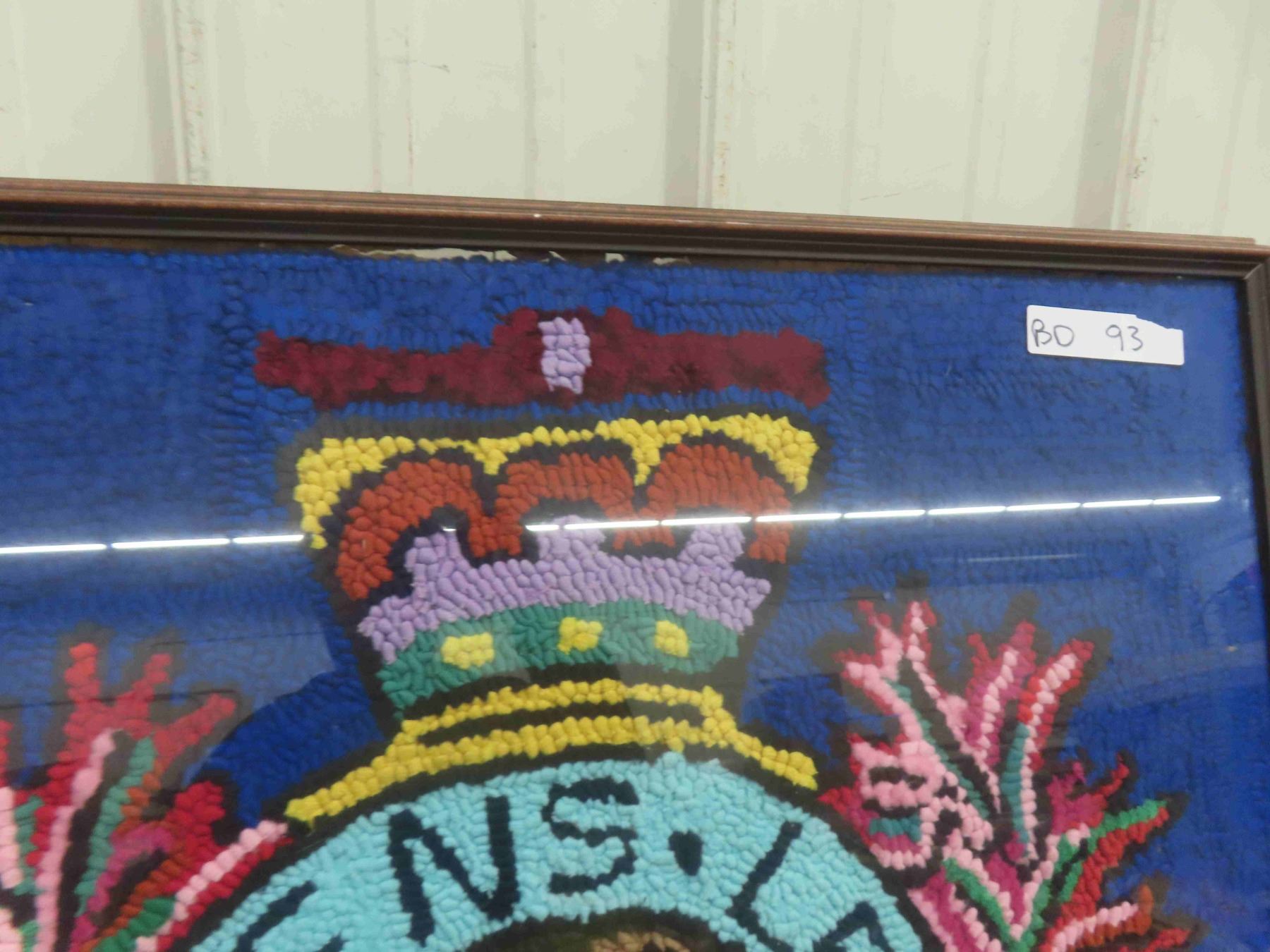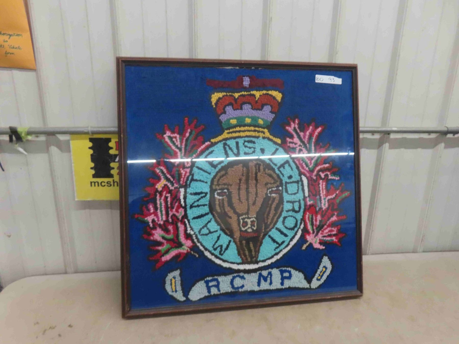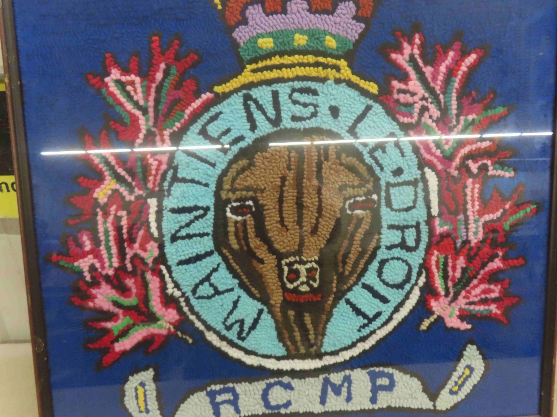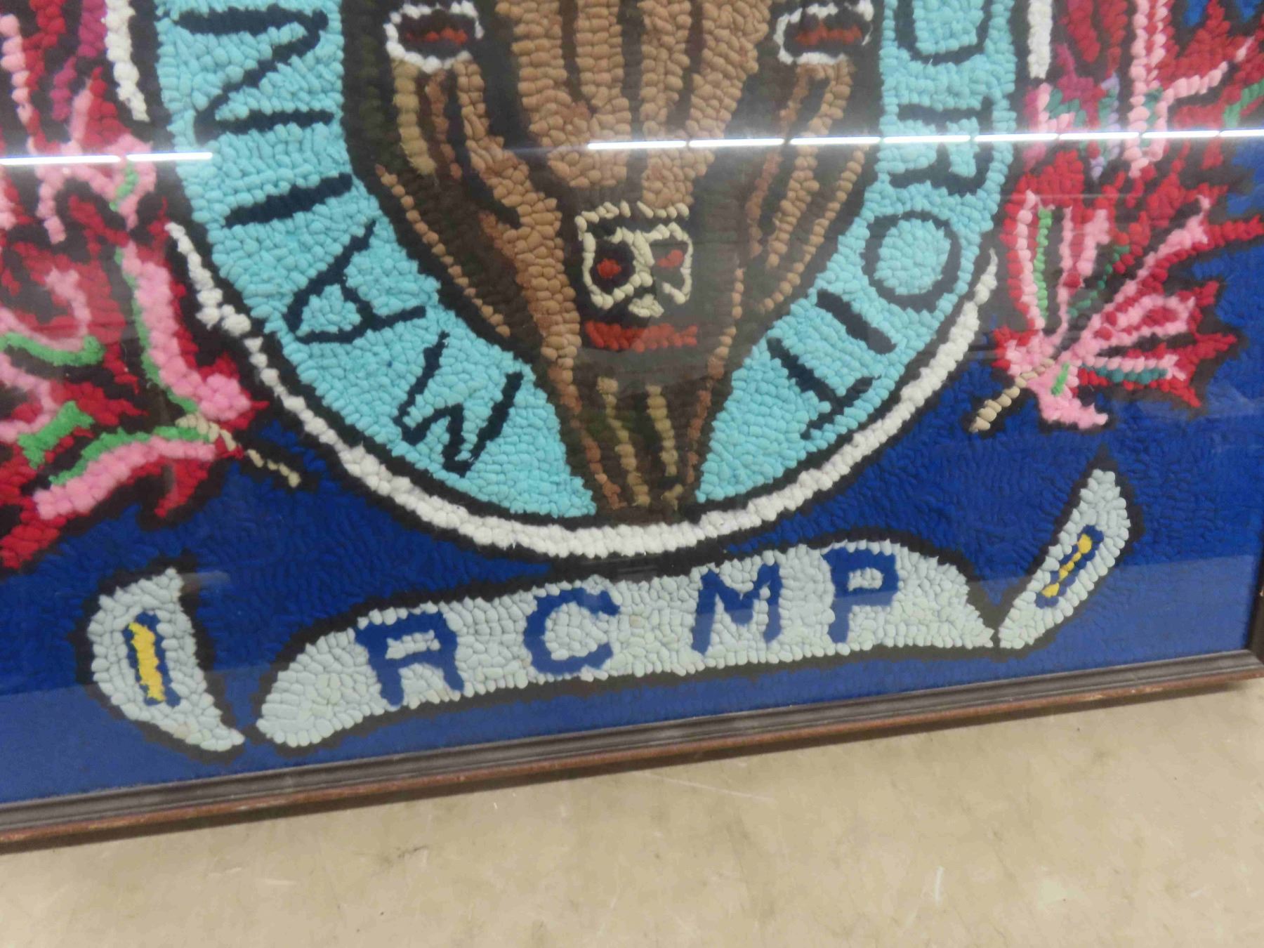 Vintage Royal Canadian Mounted Police Professionally Framed RCMP Hooked Rug 30'' x 30''