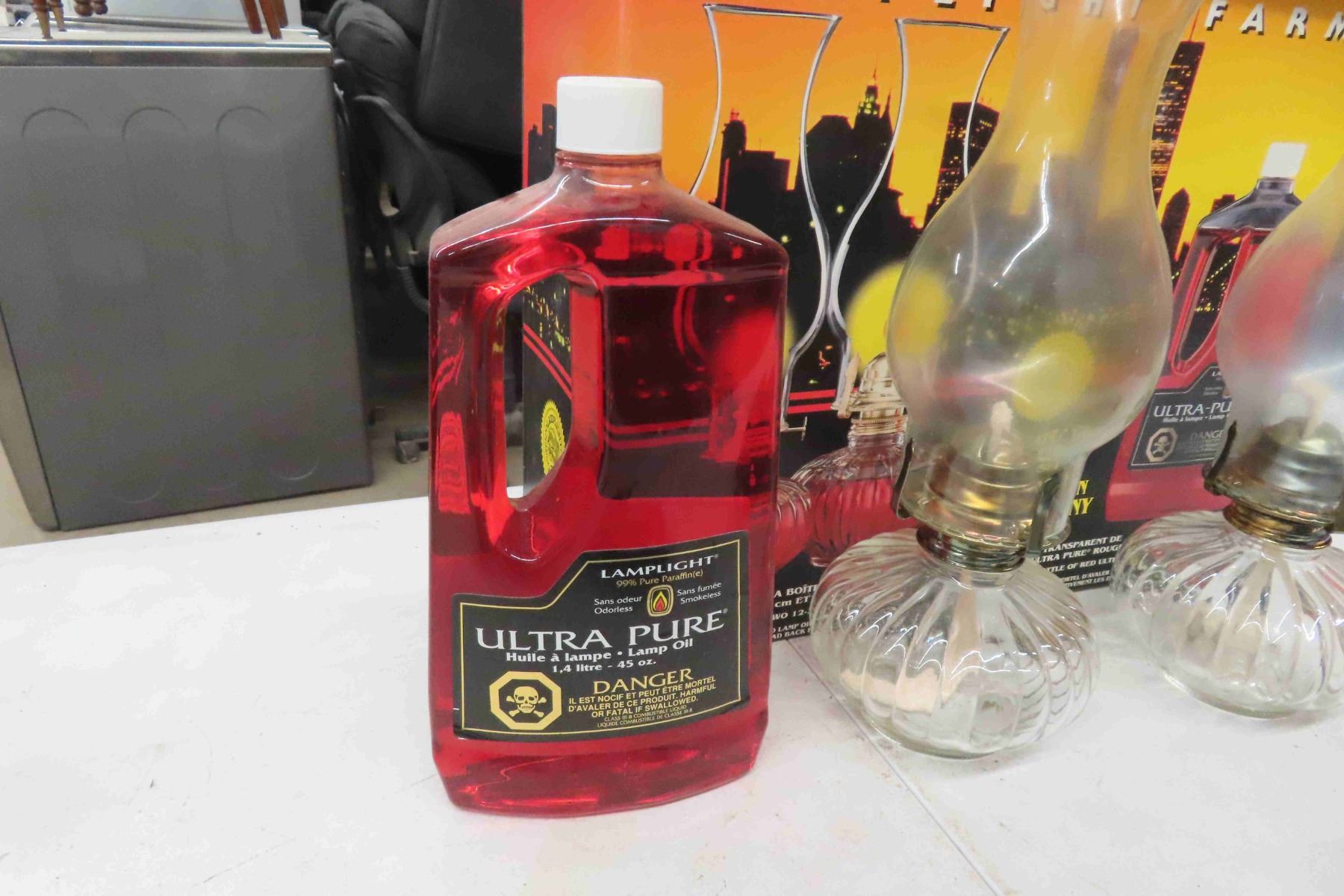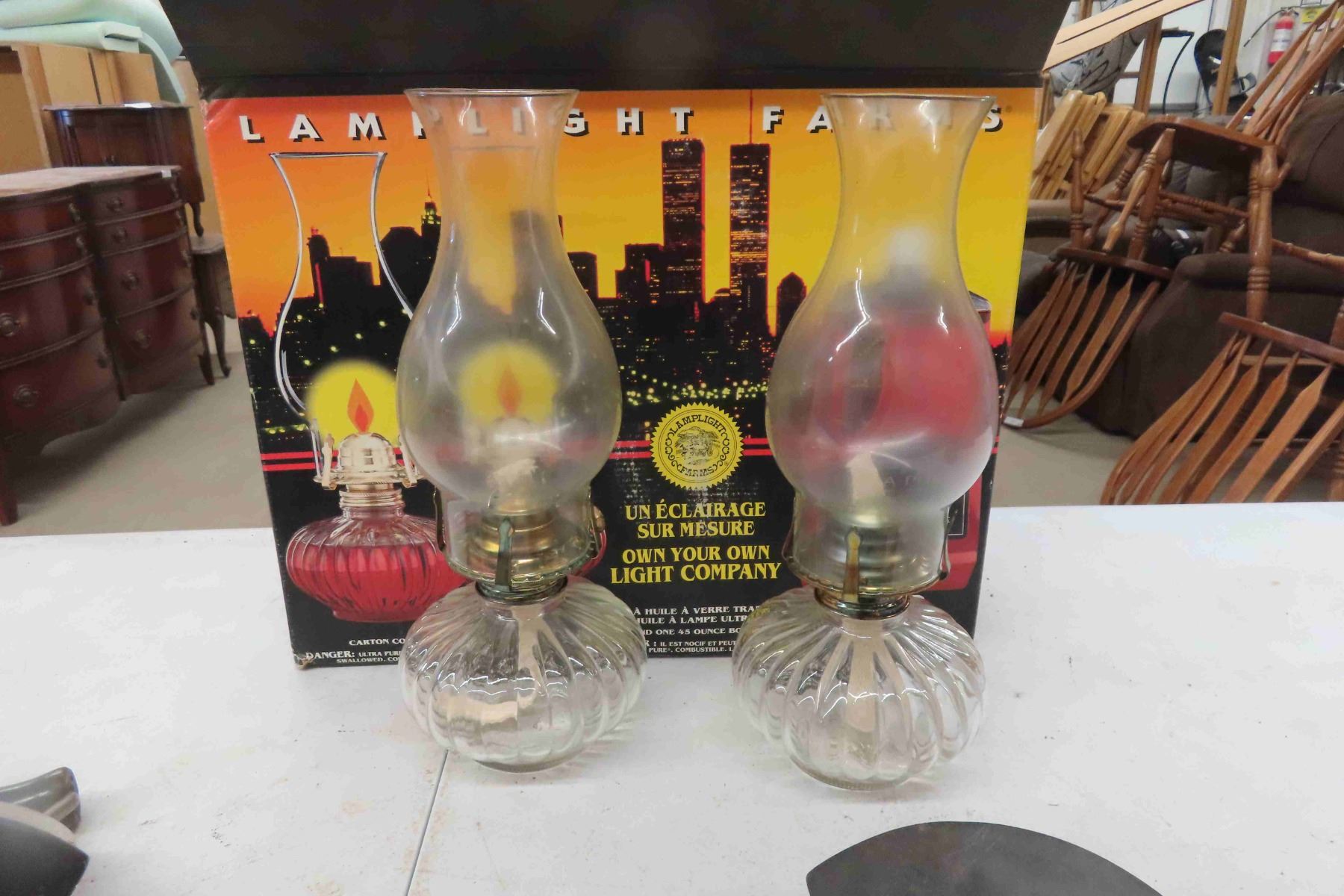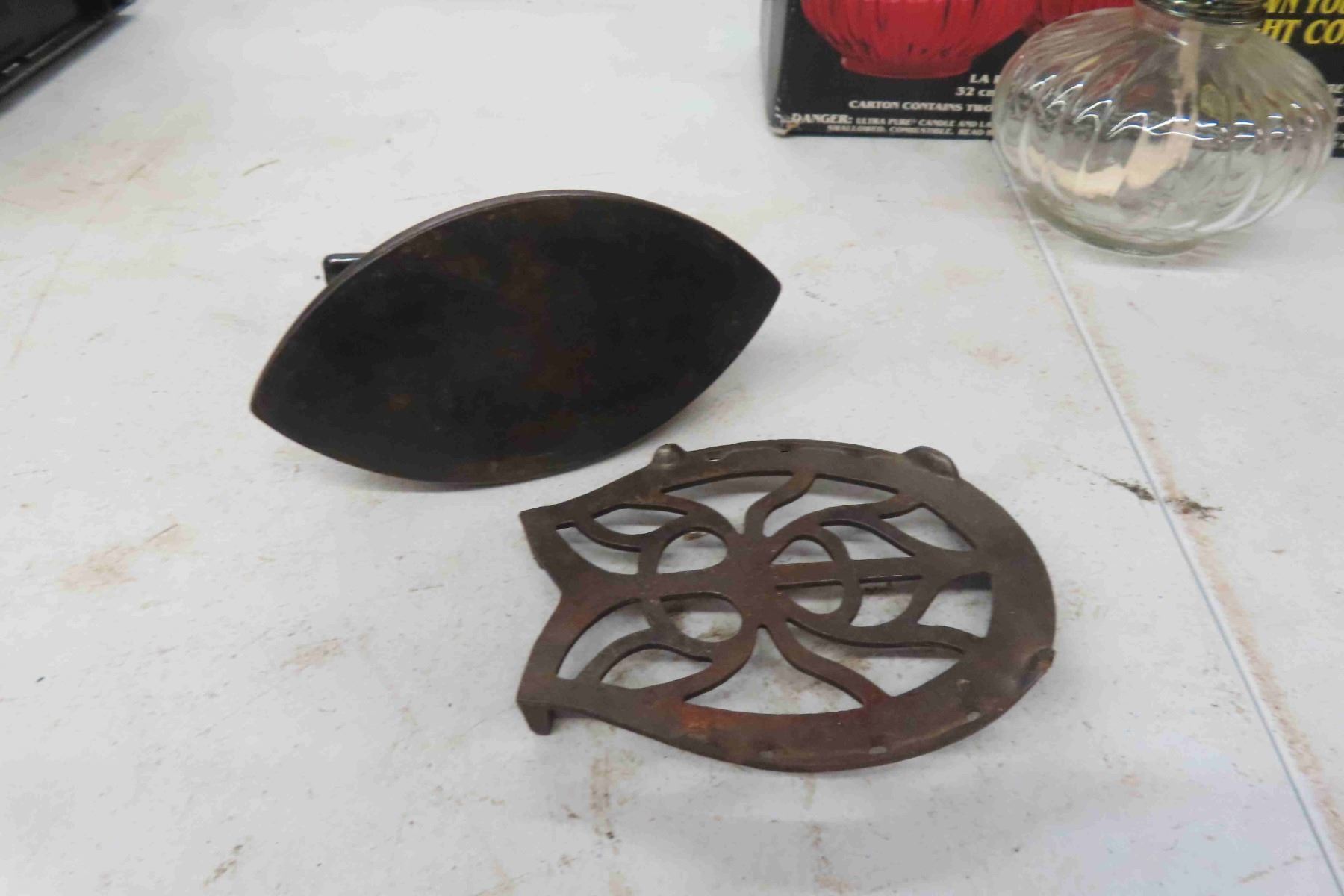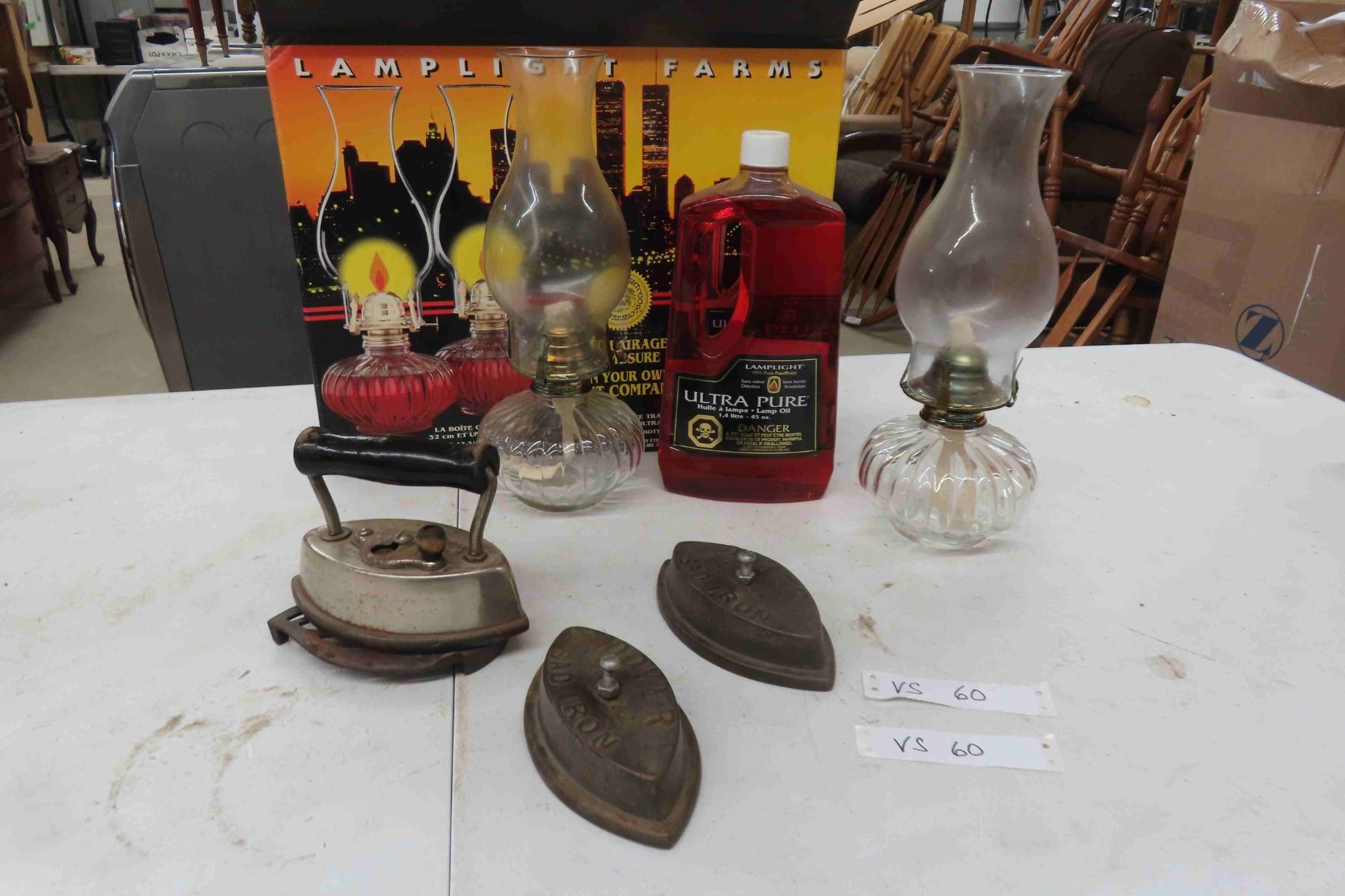Vintage Sad Irons, 2 Oil Lamps, Full Bottle Lamp Oil
