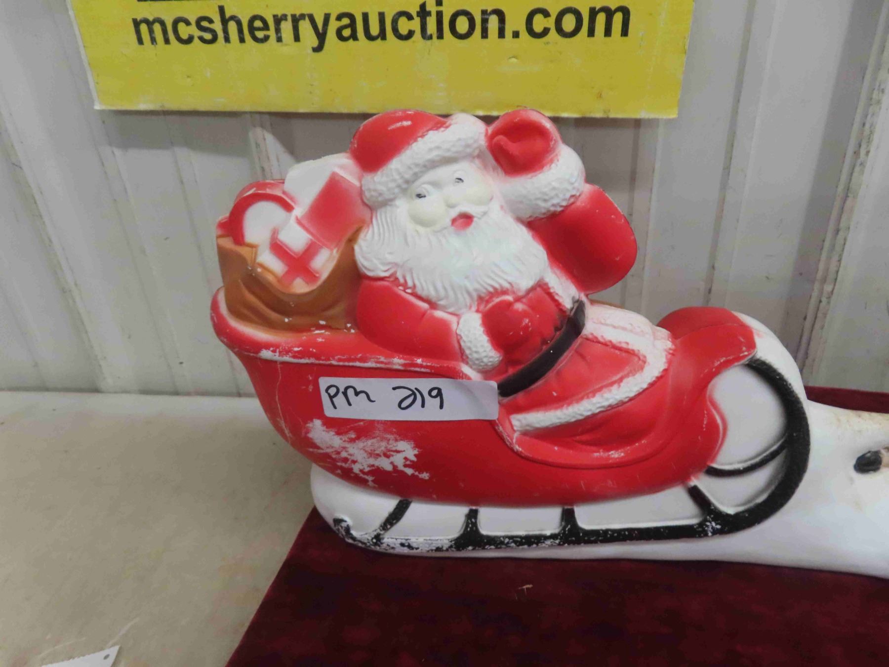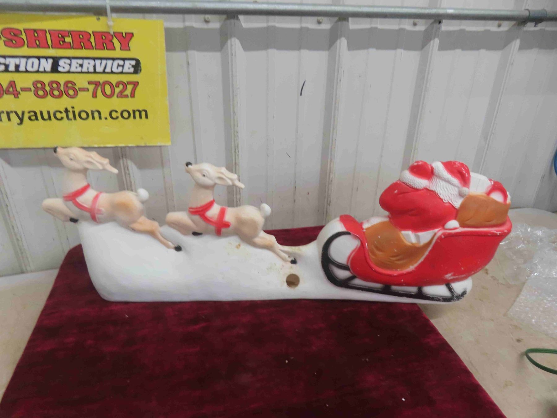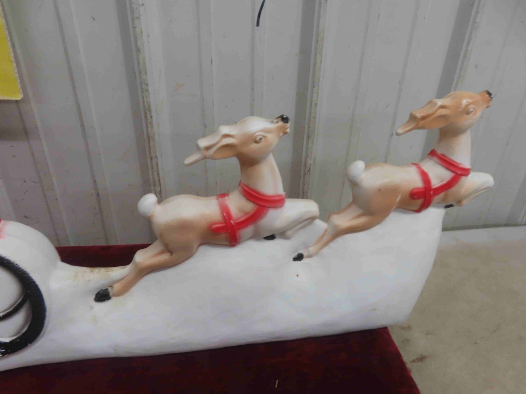 Vintage Santa, Sleigh + Reindeer Blow Mold 32'' Long